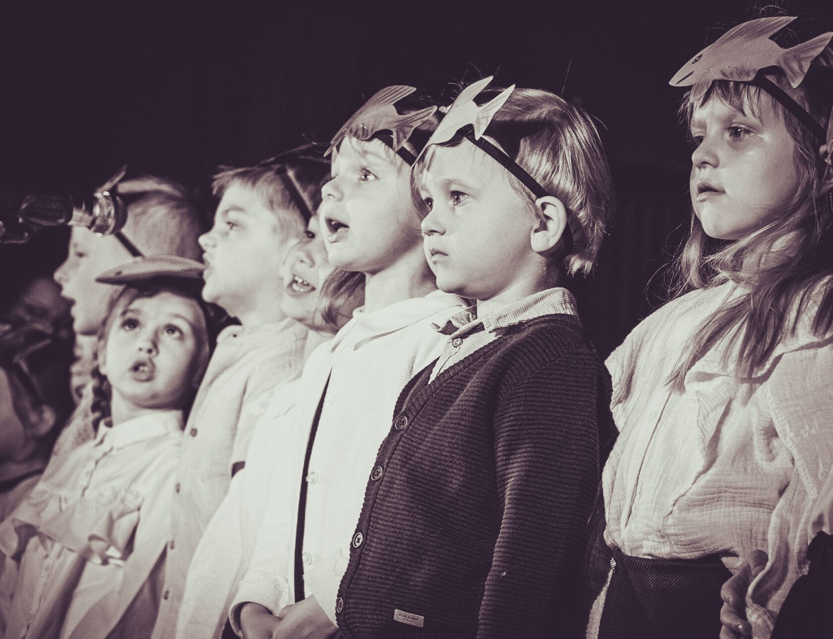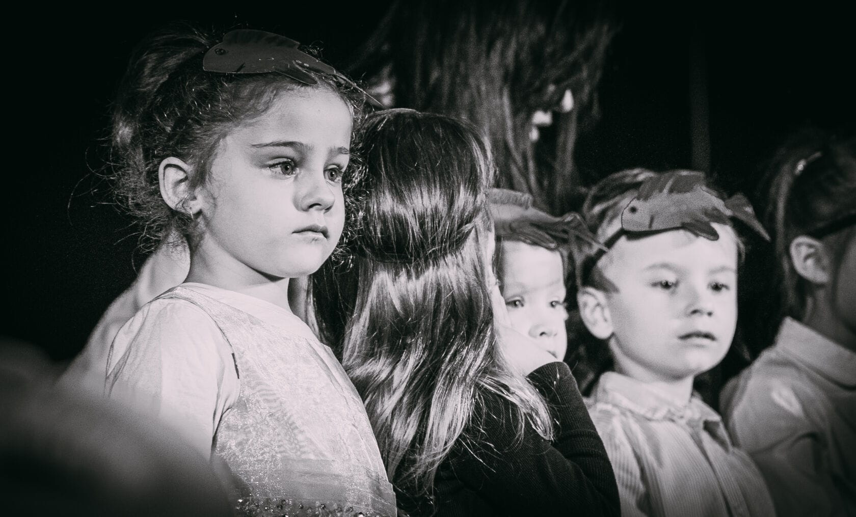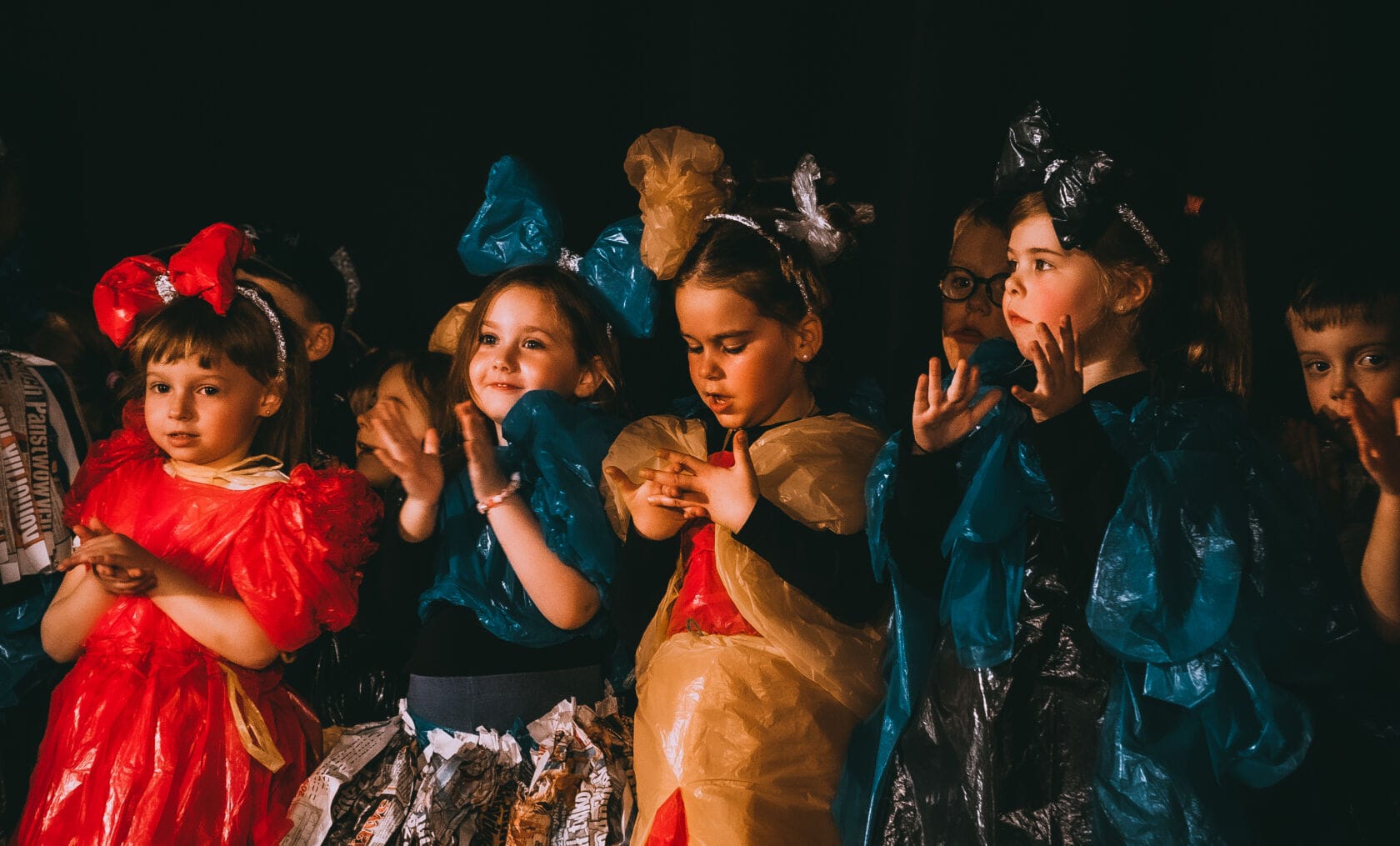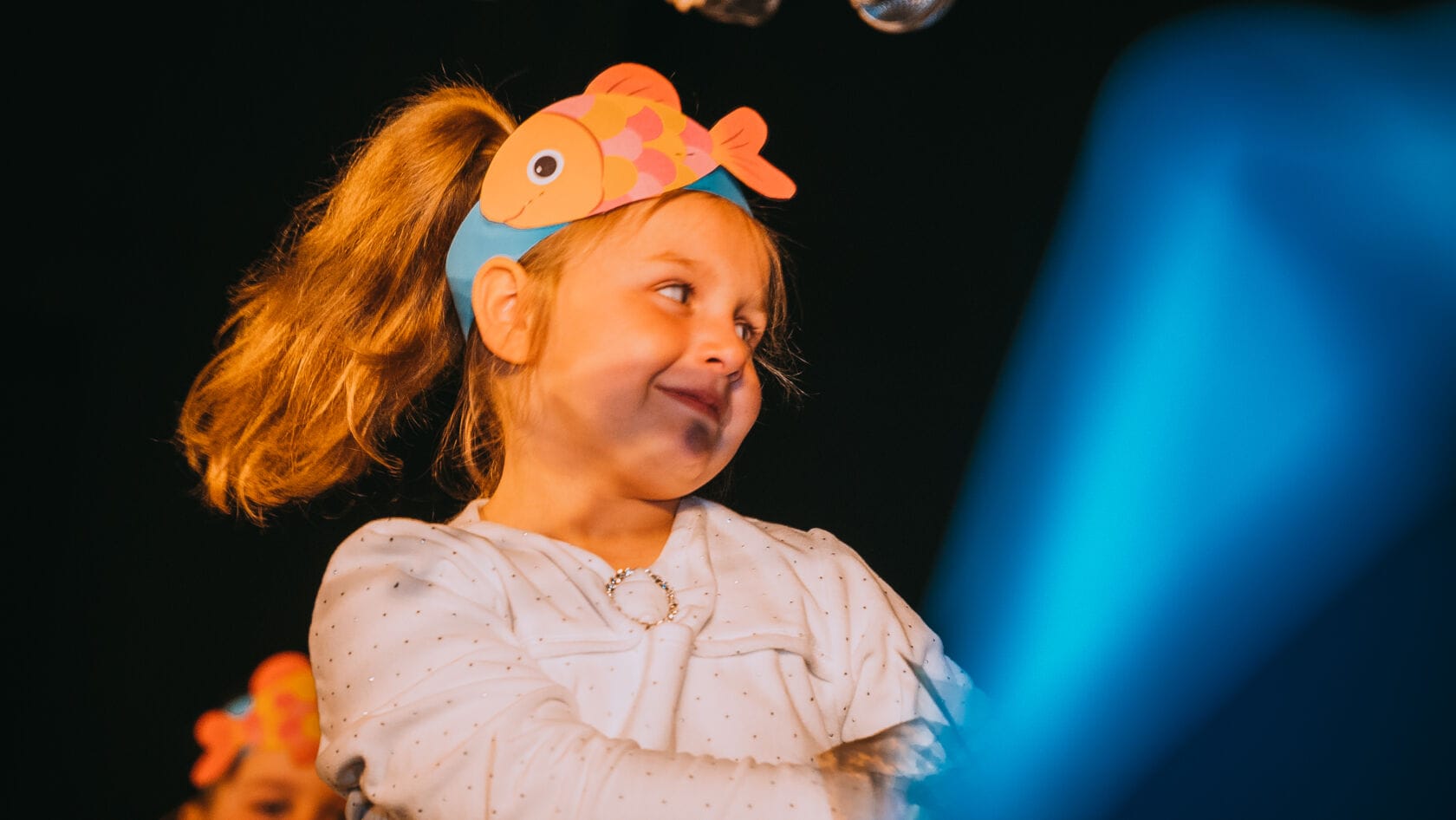 Dzieci występujące na szkolnym przedstawieniu o tematyce morskiej