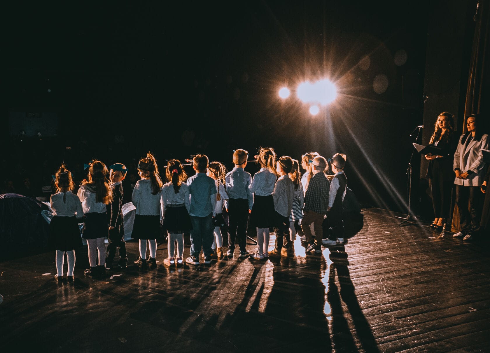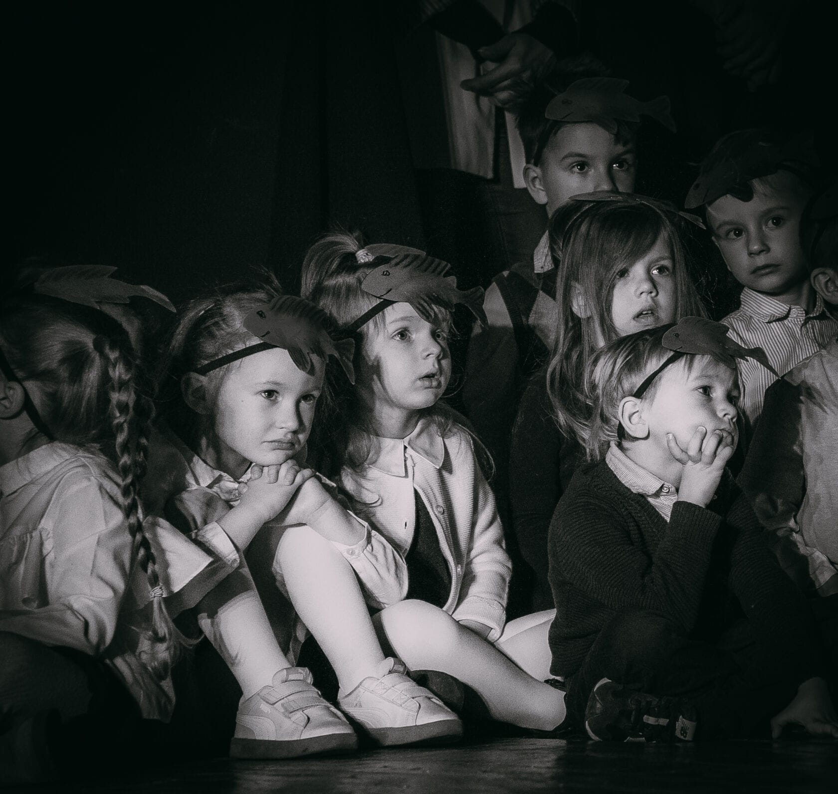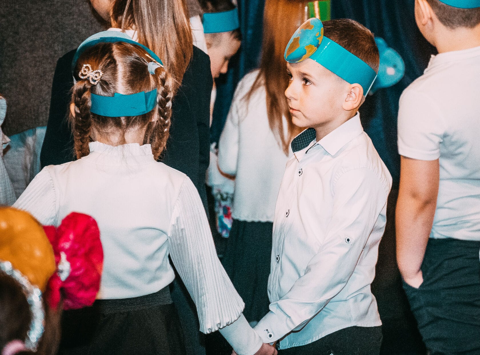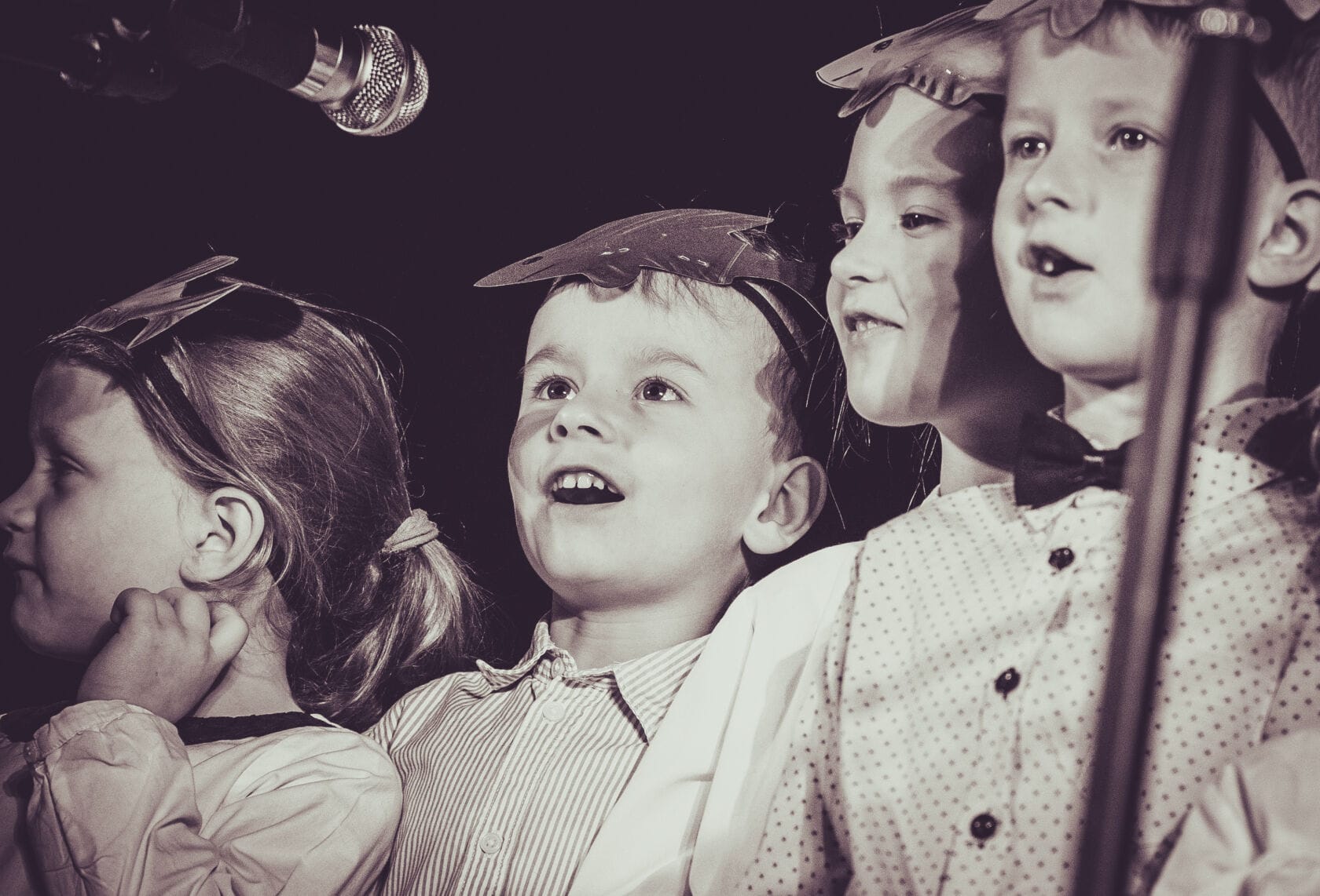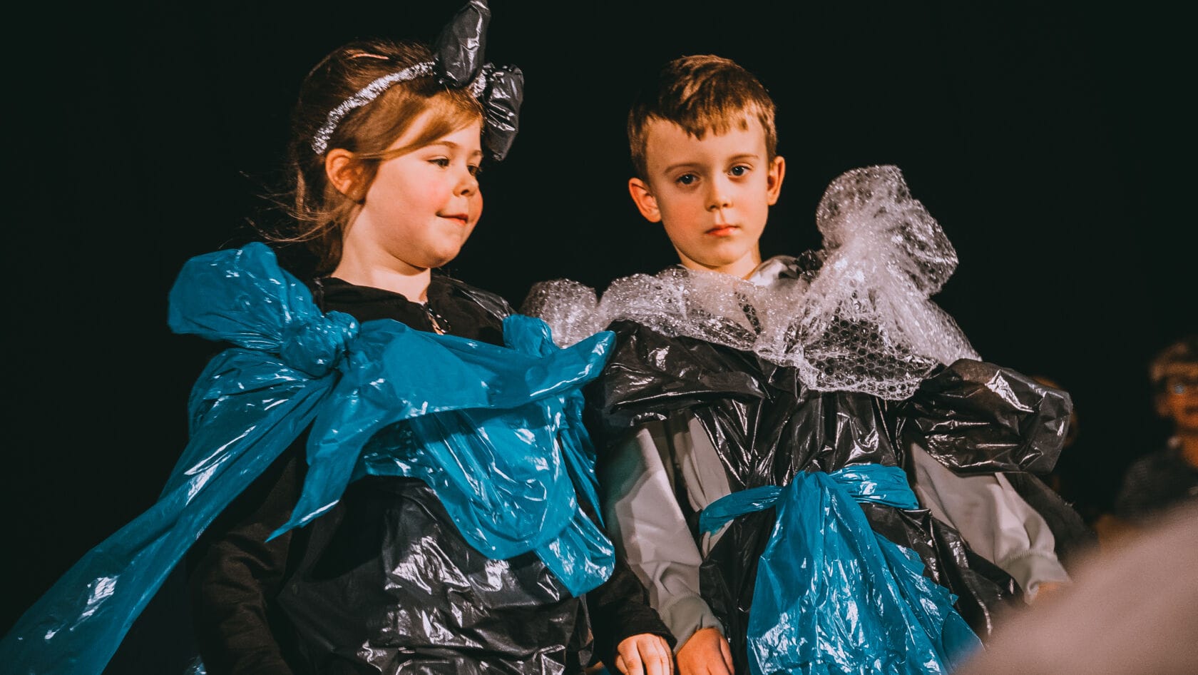 Dzieci występujące na szkolnym przedstawieniu o tematyce morskiej