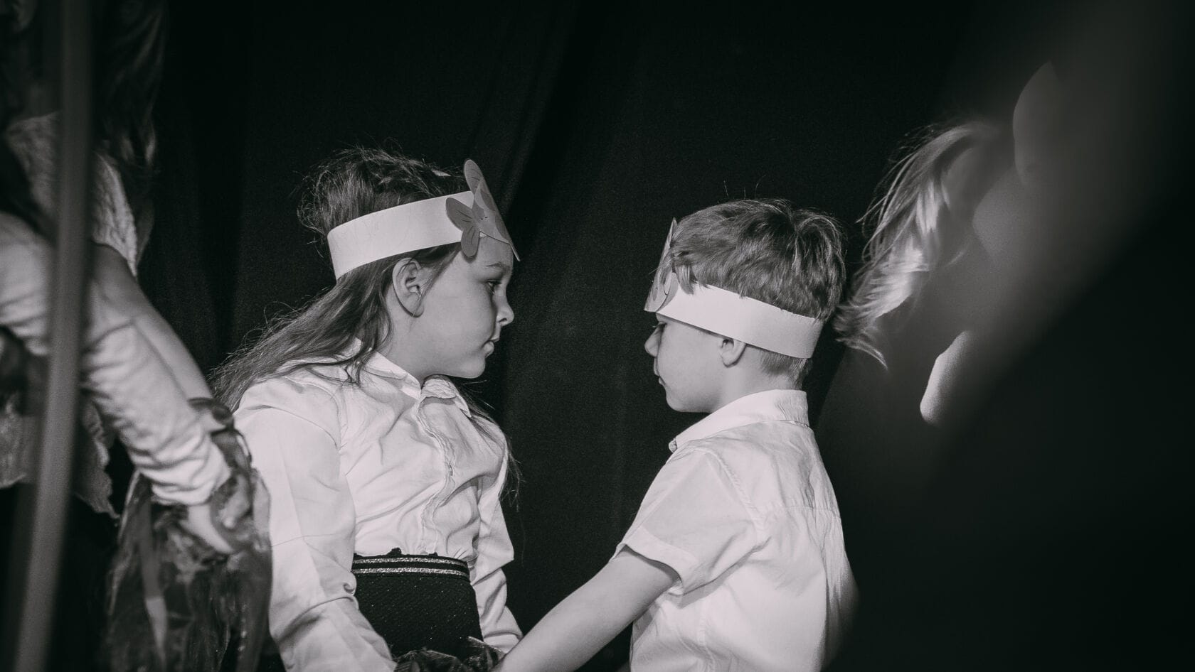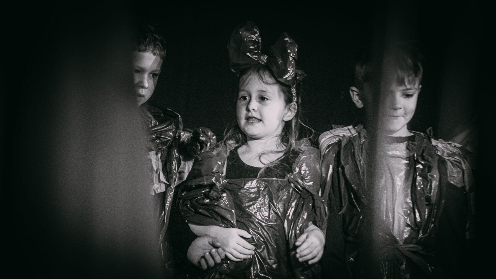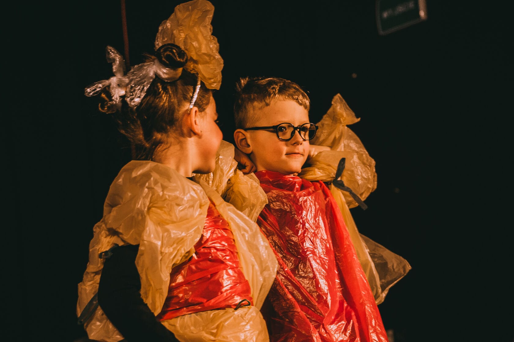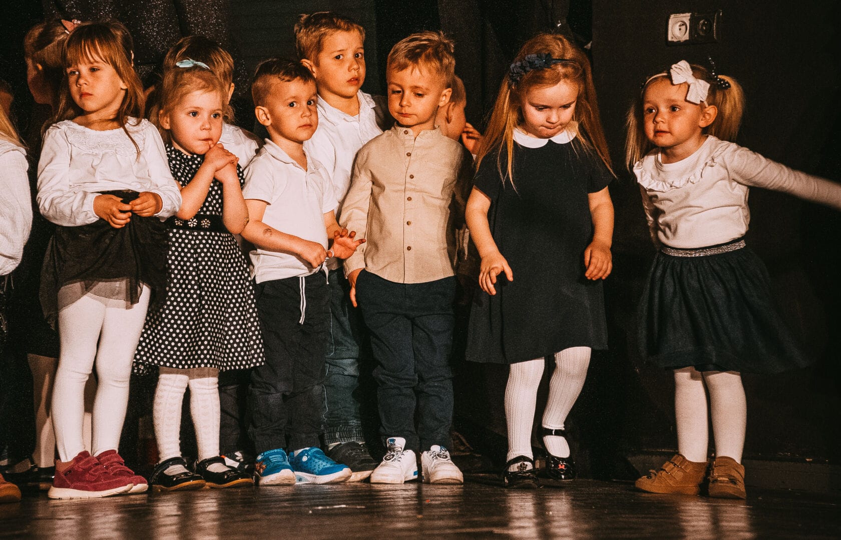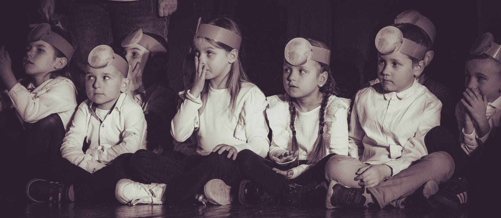 Dzieci występujące na szkolnym przedstawieniu o tematyce morskiej