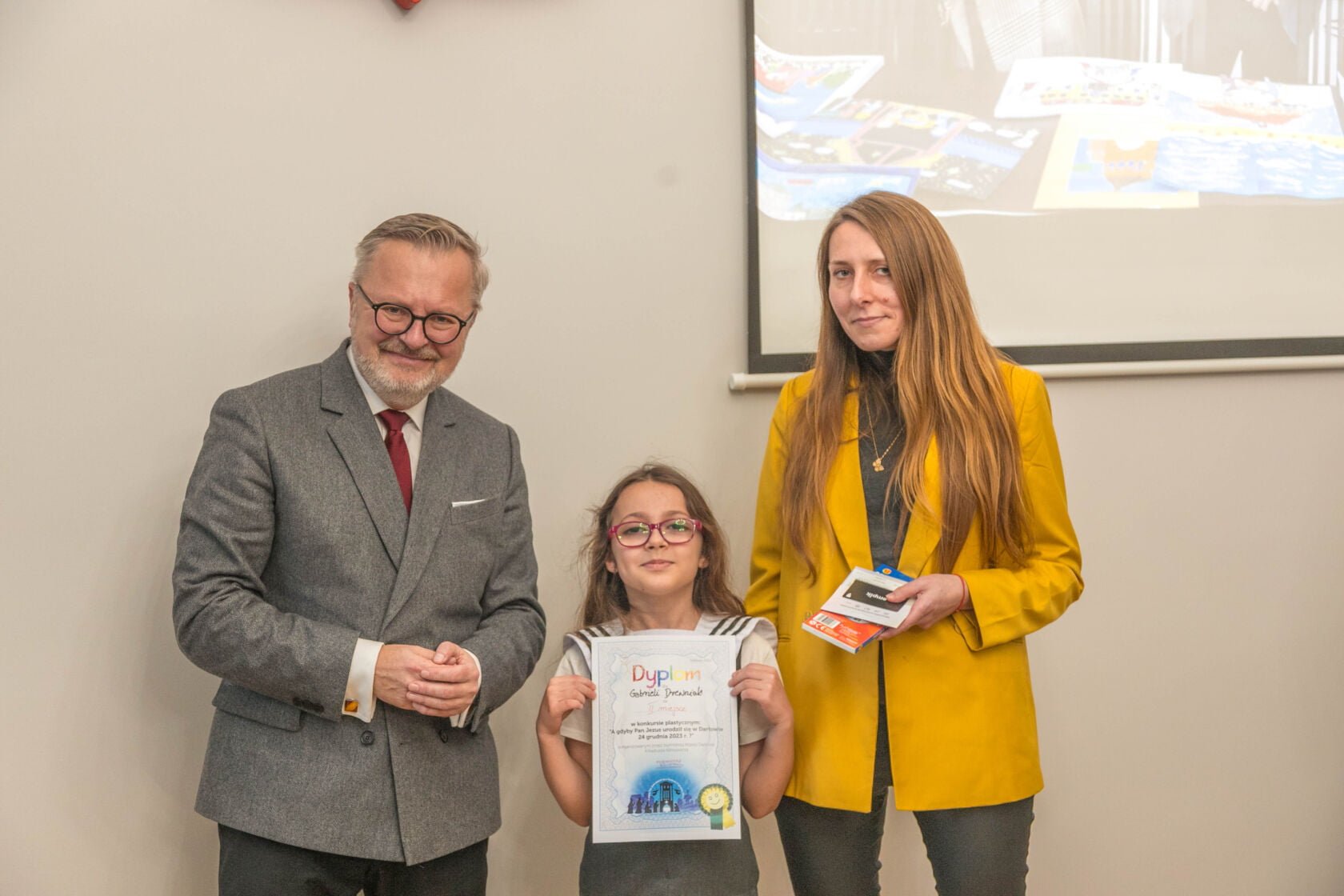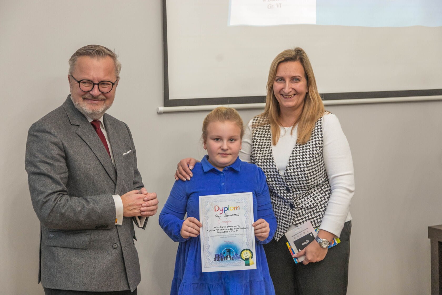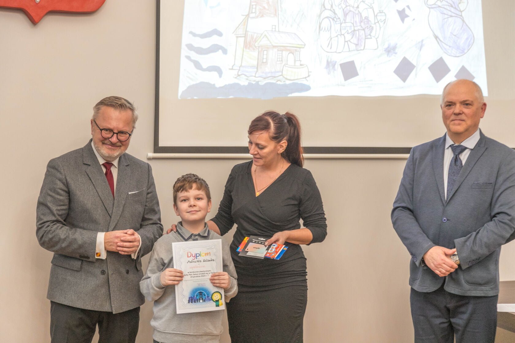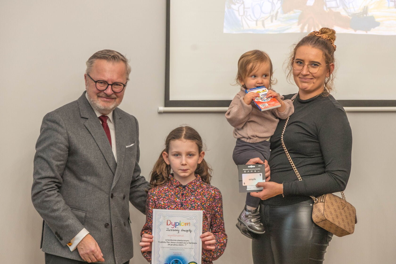 Na dzisiejszej uroczystości wręczenia nagród i wyróżnień za najlepiej wykonane prace plastyczne w konkursie „A gdyby Pan Jezus narodził się w Darłowie w 2023 r. ?” spotkali się Burmistrz Miasta Arkadiusz Klimowicz z twórcami prac -dziećmi przedszkolnymi i i klas I-III szkół podstawowych – i ich rodzicami.
