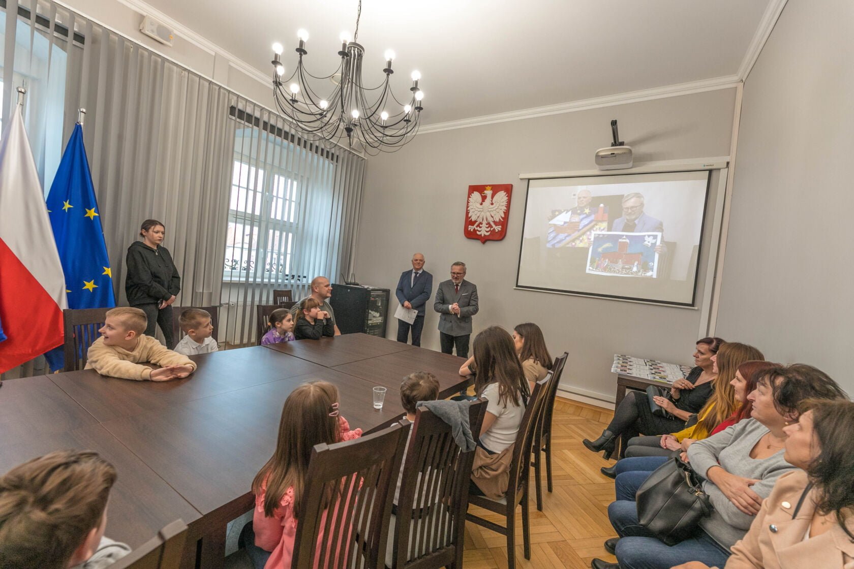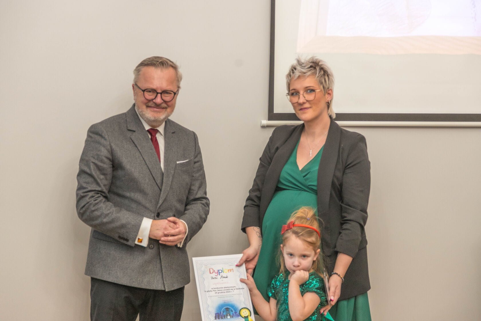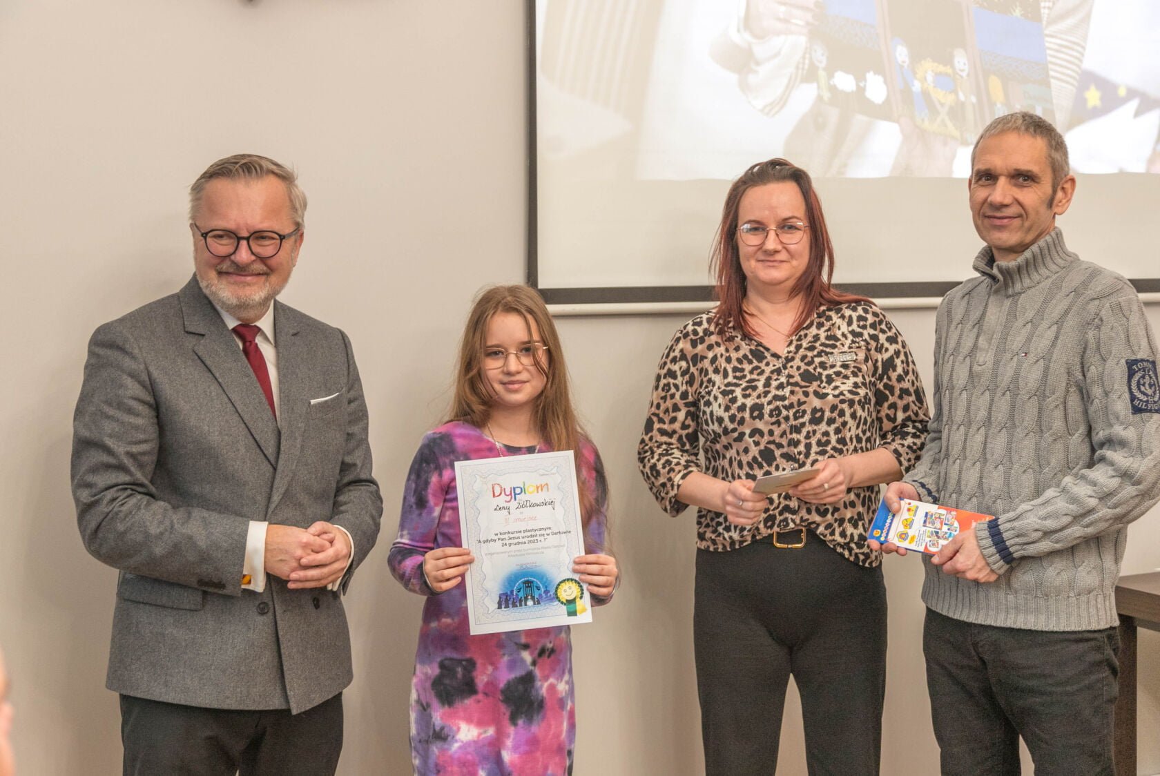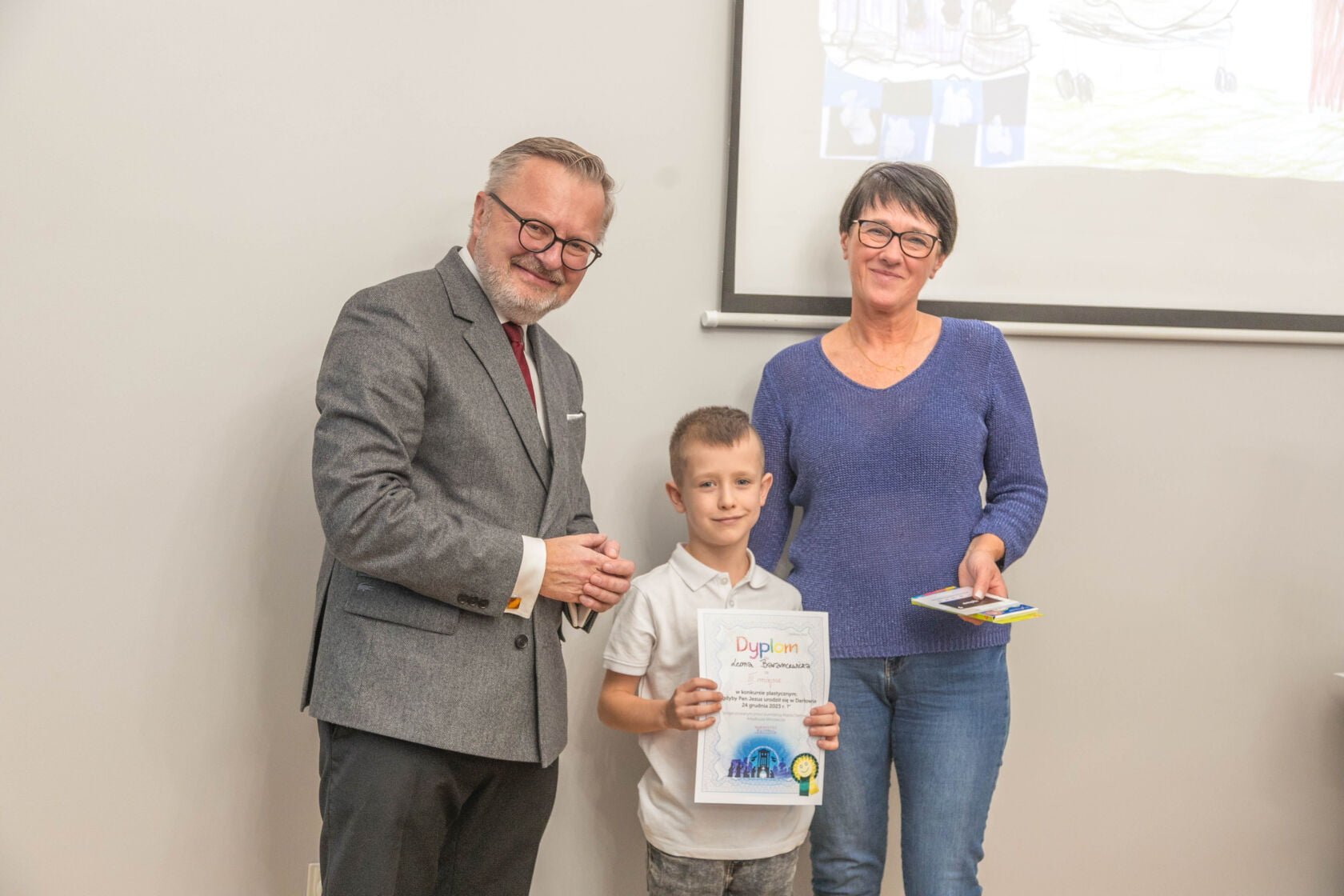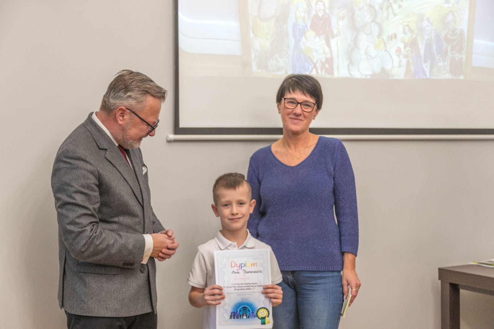 Na dzisiejszej uroczystości wręczenia nagród i wyróżnień za najlepiej wykonane prace plastyczne w konkursie „A gdyby Pan Jezus narodził się w Darłowie w 2023 r. ?” spotkali się Burmistrz Miasta Arkadiusz Klimowicz z twórcami prac -dziećmi przedszkolnymi i i klas I-III szkół podstawowych – i ich rodzicami.