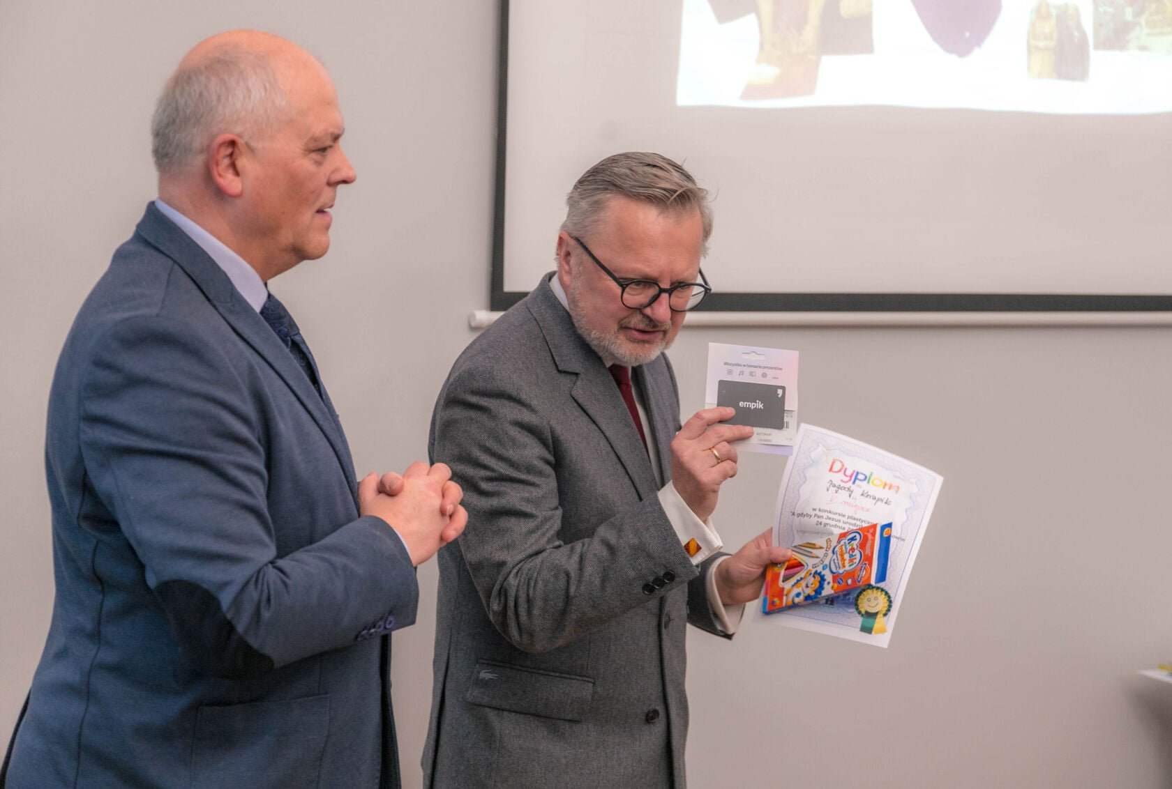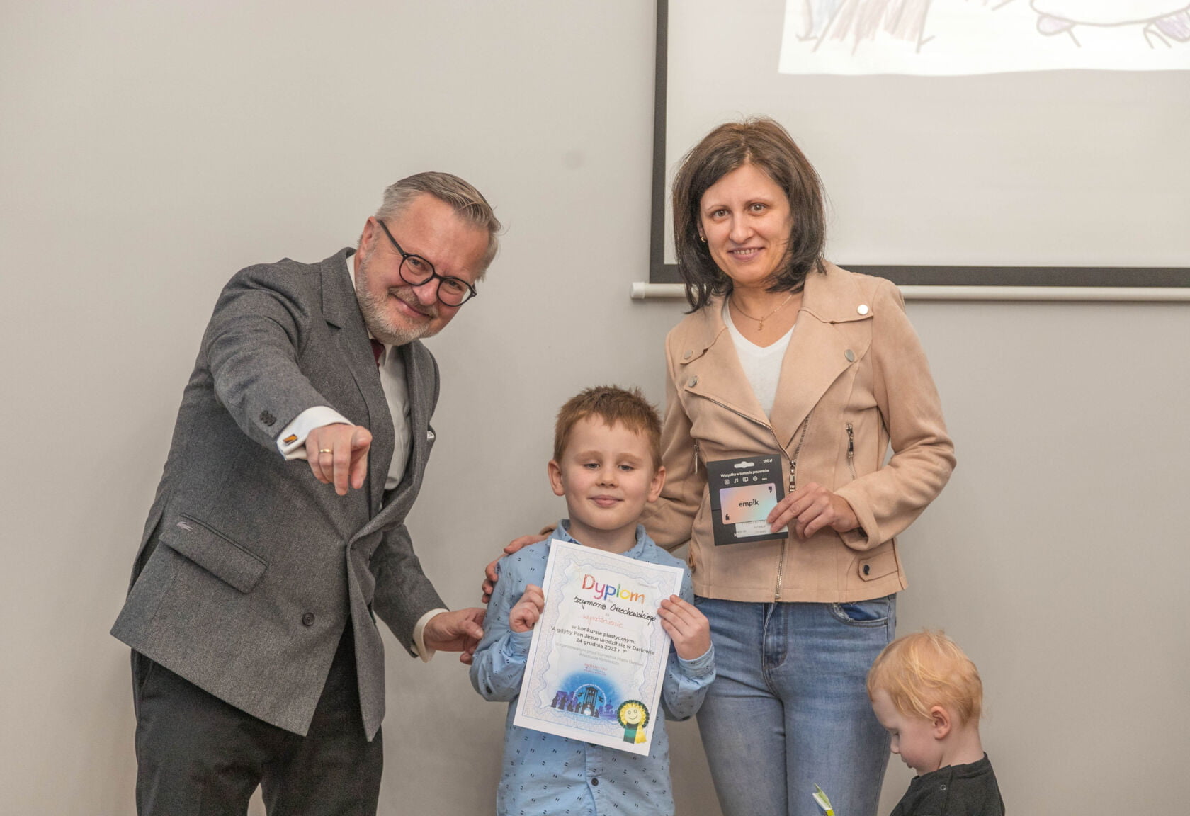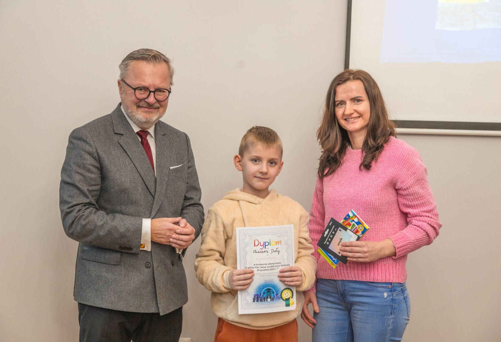 Mateuszowi Kolanek z kl. III ze Szkoły Podstawowej Nr 3, Ninie Piechockiej z Przedszkola Niepublicznego „Promyczek”, Oliwierowi Duła z kl. III b ze Szkoły Podstawowej Nr 3, Zuzi Mruk z Przedszkola Nr 2 – wszyscy otrzymali voucher z Empik w Koszalinie o wartości 100 zł i komplet kredek.