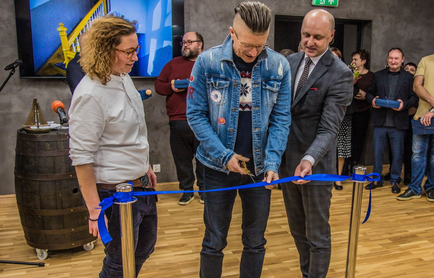 Uroczystego przecięcia wstęgi dokonał: Rafał Nagórski zastępca burmistrza w towarzystwie: Tomasza Breszki – szefa referatu inwestycji miejskiego ratusza i Magda Burduk, dyrektor DOK Darłowo.
