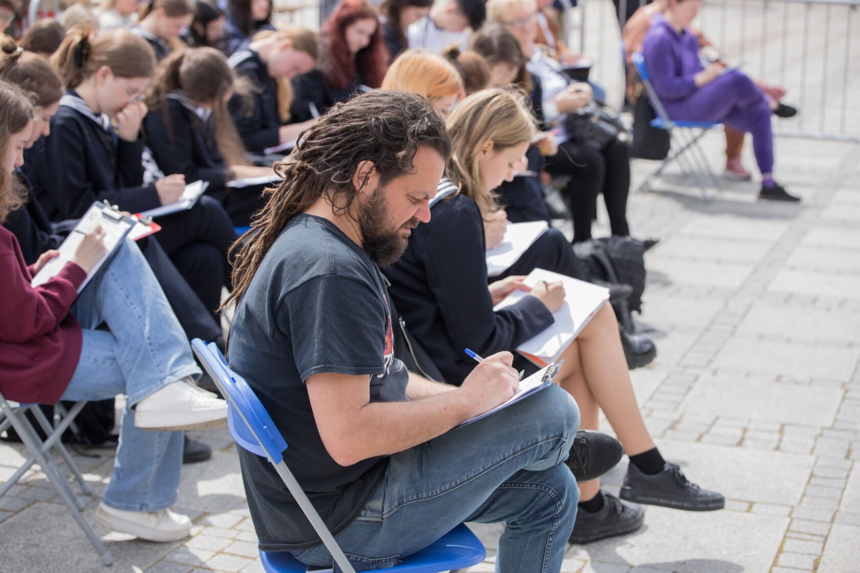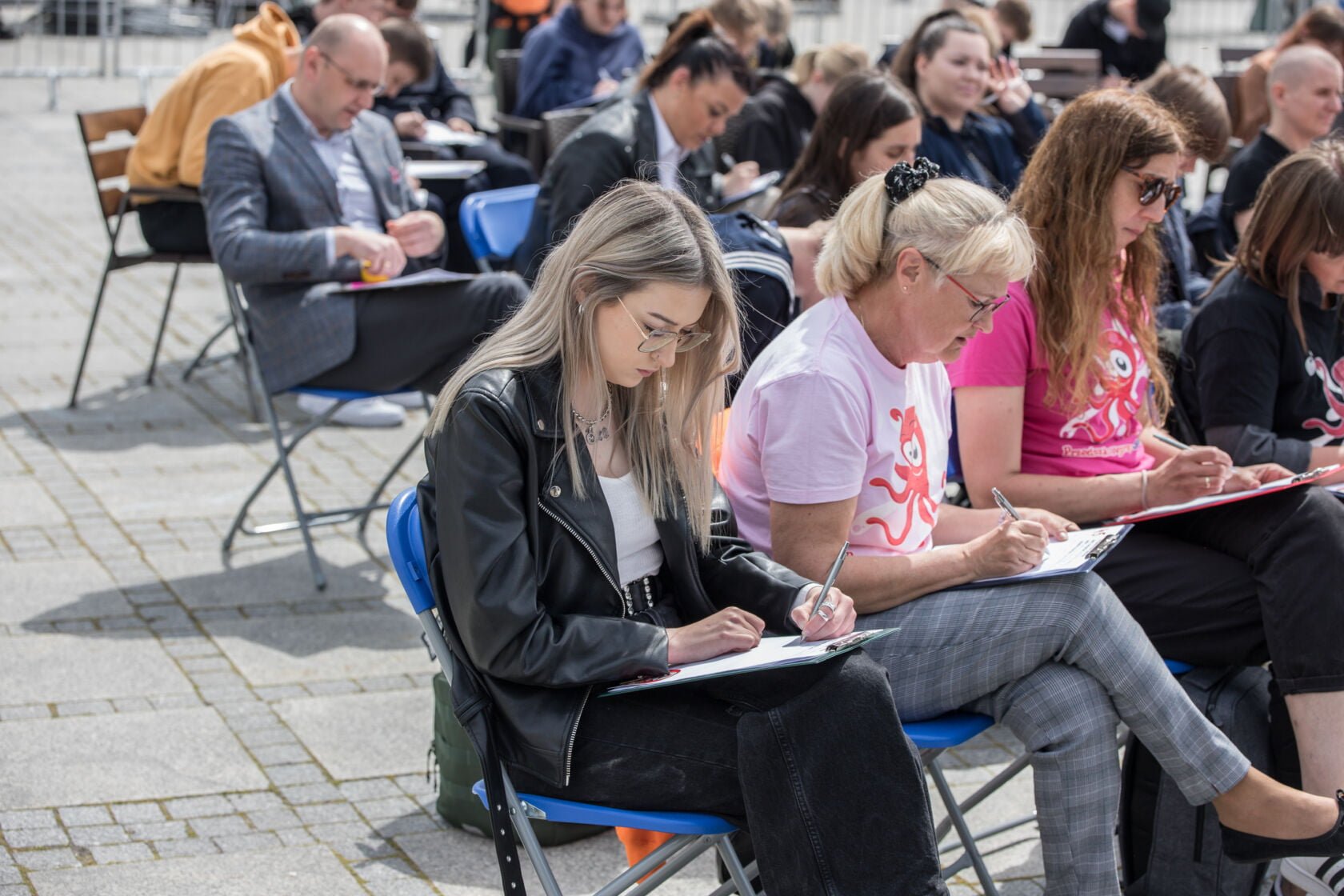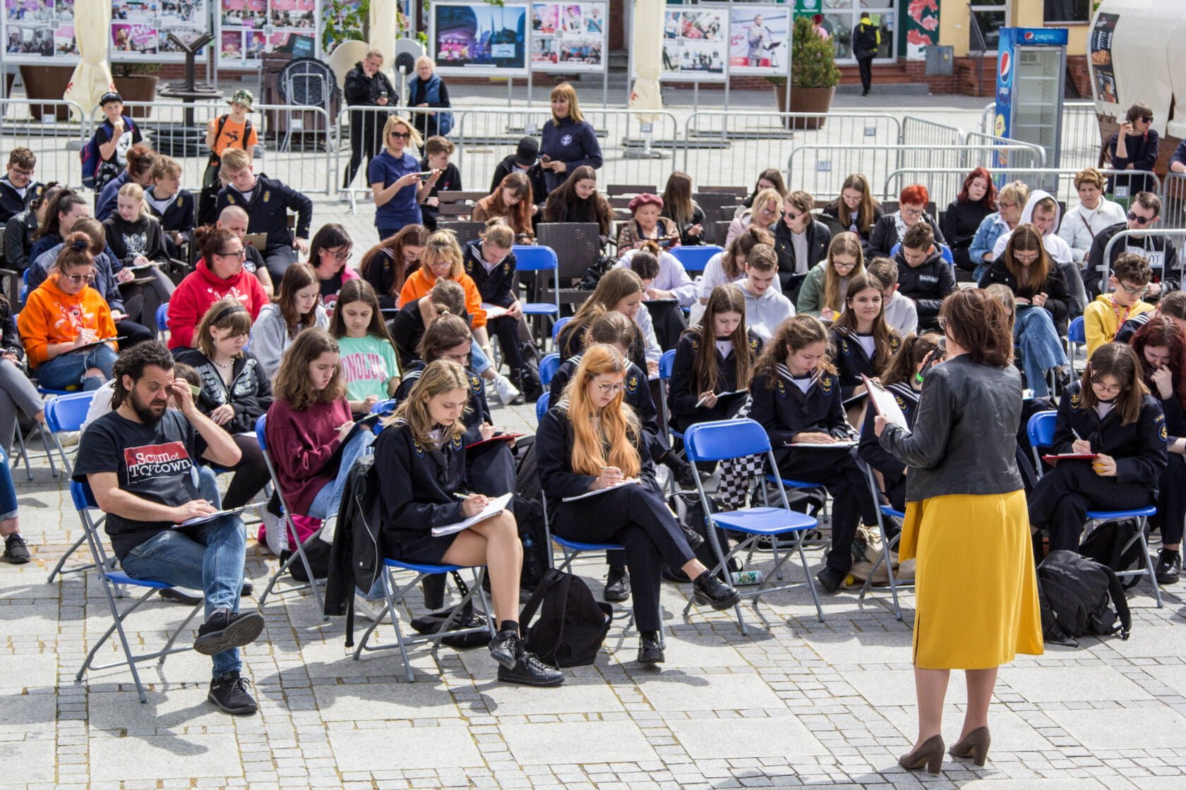 III Nadmorskie Dyktando, którego organizatorem była Miejska Biblioteka Publiczna im. Agnieszki Osieckiej w Darłowie za nami. Dyktando odbyło się na rynku miejskim. Wydarzenia zgromadziło pasjonatów literatury i języka polskiego. Uczestnicy zebrali się, by sprawdzić swoje umiejętności ortograficzne i lingwistyczne. Tekst przygotowała i dyktowała Pani Ewa Majdańska.
