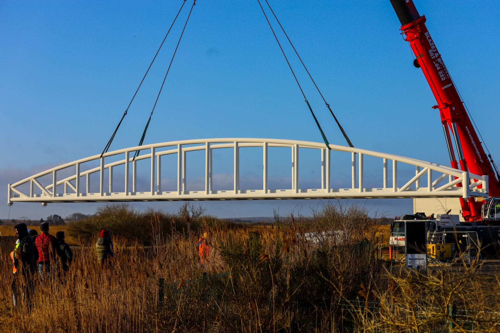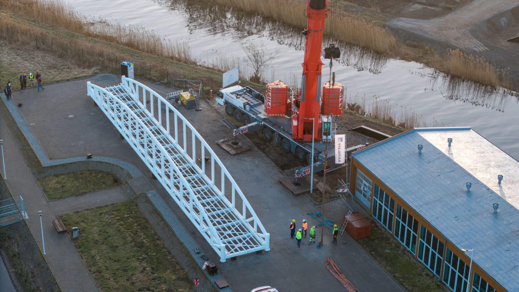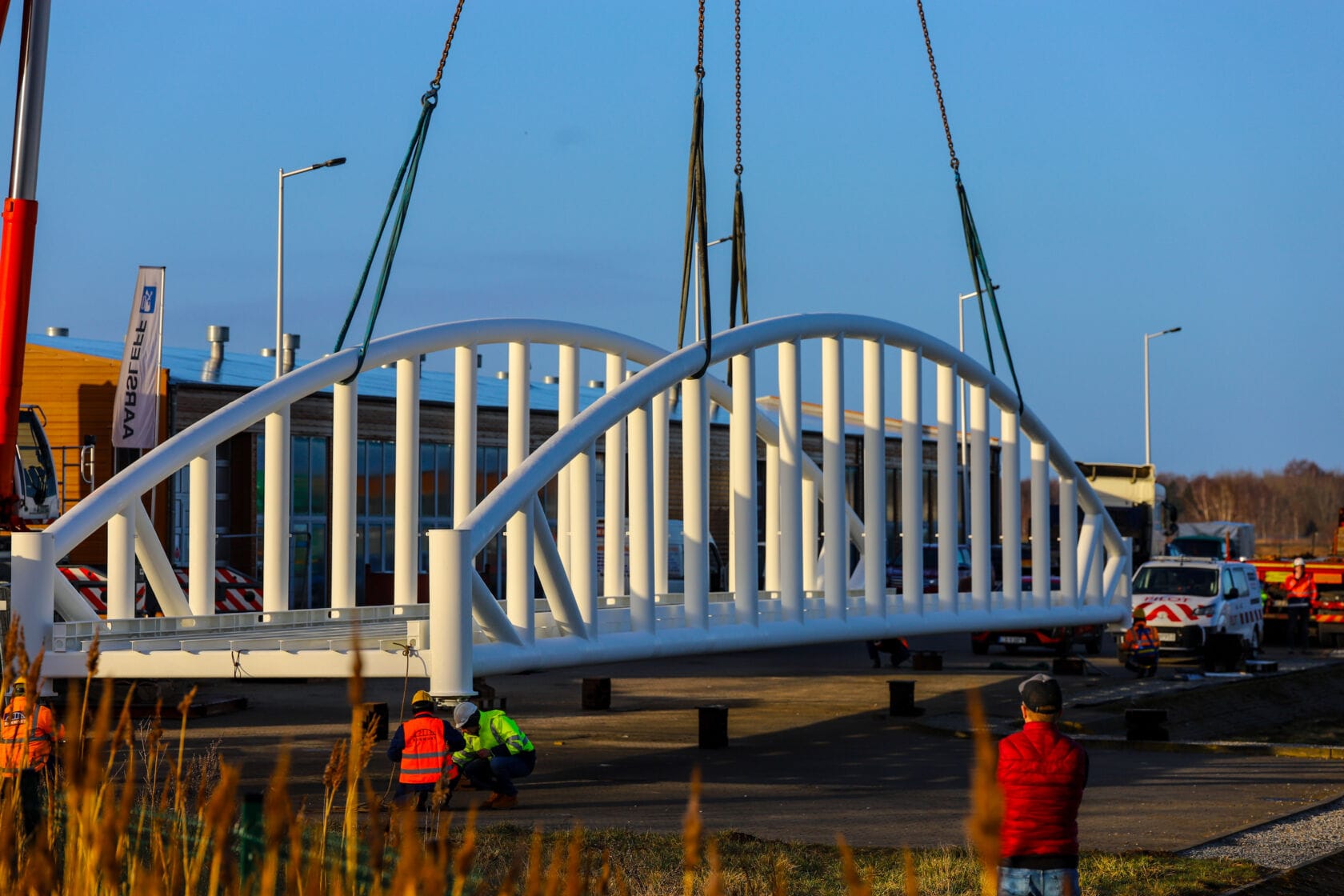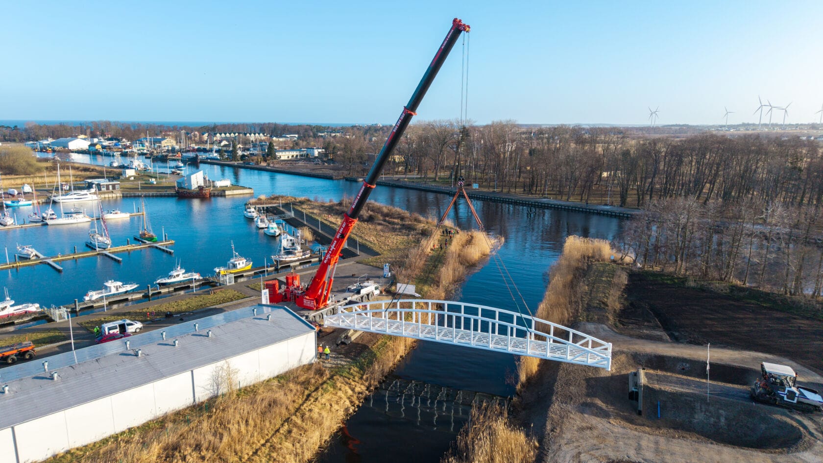 31 marca o godzinie 7:00 rozpoczęto montaż konstrukcji nowego mostu pieszo-rowerowego, który połączy dwie części portu położone po zachodniej stronie miasta. To ważny etap inwestycji realizowanej w ramach szerszego projektu, pn. „Modernizacja i rozbudowa obiektów hydrotechnicznych w Porcie Morskim w Darłowie na potrzeby obsługi i konserwacji instalacji wiatrowych na morzu”.
