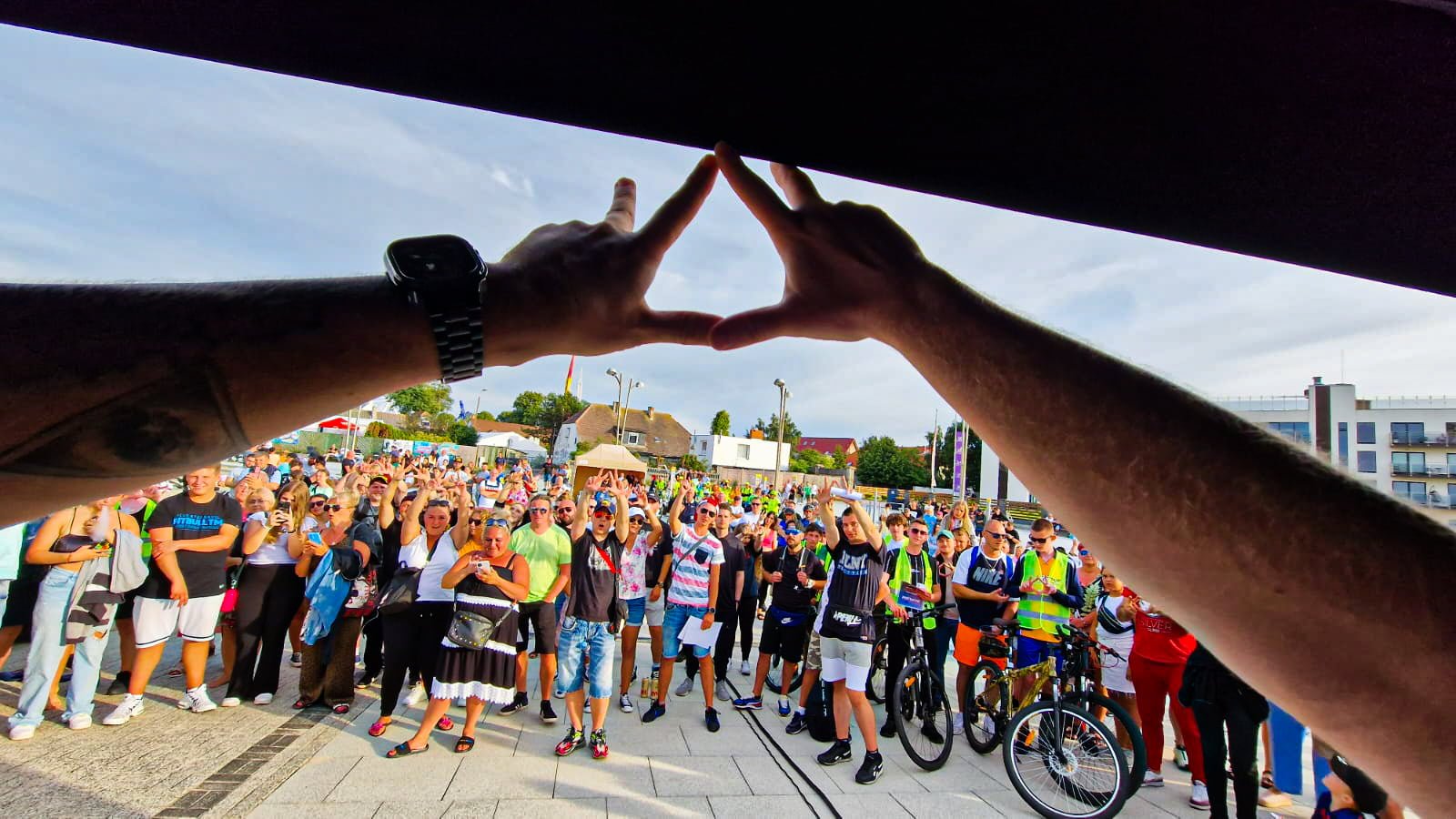 Punktualnie o godz. 14.00 na wystrzał z rewolweru, peleton ruszył z Darłowa do Jarosławca. Uczestnicy po drodze zaliczyli przekop na Jeziorze Kopań, festyn w Wiciu i kamień wyznaczający geograficzny środek polskiego wybrzeża. Przed stolicą bursztynu trzeba było zmagać się z chwilową ulewą. Jednak po dotarciu do centrum Jarosławca wychodzące słońce szybko wysuszyło cyklistów. Tutaj dzięki uprzejmości Adriana Pawłowskiego – radnego powiatu, Marcina Tamy – sołtysa Jarosławca, a także firmy EDEN Catering rowerzyści zostali solidnie nakarmieni wypełnionymi po brzegi boxami, lodami, a pamiątkę stanowiły magnesy na lodówkę. Adrian wręczył Tedemu pamiątkową miniaturę pomnika rybaka, a BigBoy wrócił z flagą kurortu w gminie Postomino. Pan Mieczysław w prezencie dostał zaś 3-dniowy voucher na dietę pudełkową. Po powrocie do Darłówka i pokonaniu blisko 40 – kilometrowej podróży każdy z uczestników otrzymał dyplom, a inicjator imprezy TEDE dał koncert w wersji soundsystemowej, którego poprzedził set Dj’a Dandesa. Muzyczny happening na finał zgromadził nie tylko uczestników rajdu, ale także mieszkańców i turystów. Mogliśmy usłyszeć hity jak i nowe produkcje artysty. Na koniec nie obyło się bez zdjęć i autografów, a także przewijało się jedno pytanie: kiedy kolejny rajd? Odpowiadamy: niebawem!