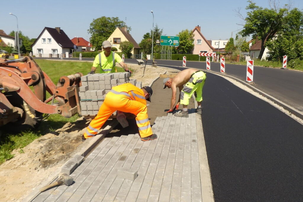 Kładą asfalt i kostkę betonową na rowerowej trasie