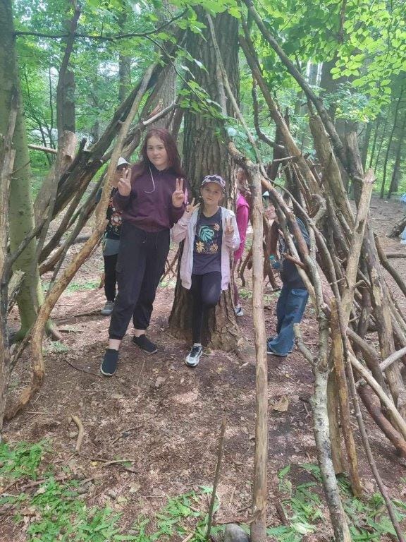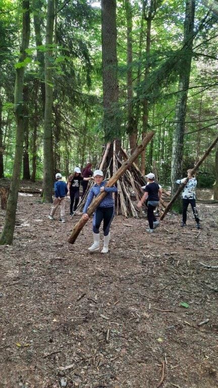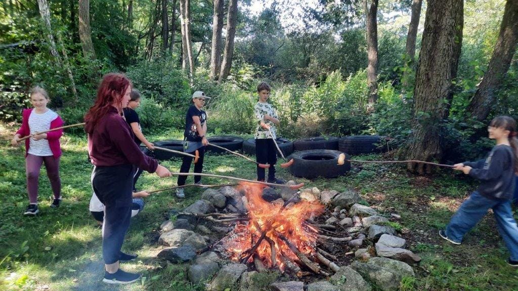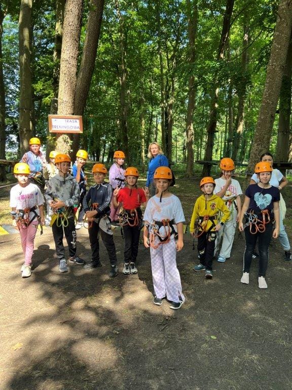 w czasie wakacji. Pokonywały swoje lęki w parku linowym oraz sprawdzały swoją sprawność fizyczną na torze przeszkód w lesie (na Spławiu). Wycieczka zakończyła się smacznymi kiełbaskami na ognisku.
