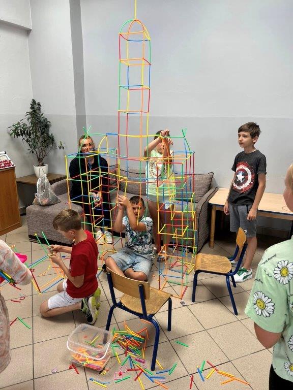 Drugi turnus półkolonii zakończył się, jak to dzieci określiły, za szybko. Chusteczniki wykonane metodą decoupage wyszły cudne. Dzieci wykazały się kreatywnością przy tworzeniu prac z piankoliny, wznosiły bardzo wysokie wieże z patyczków konstrukcyjnych