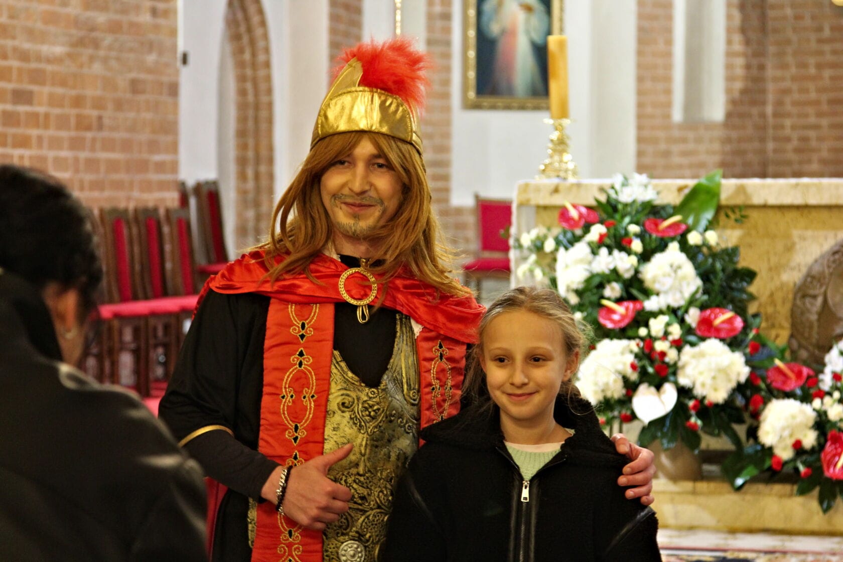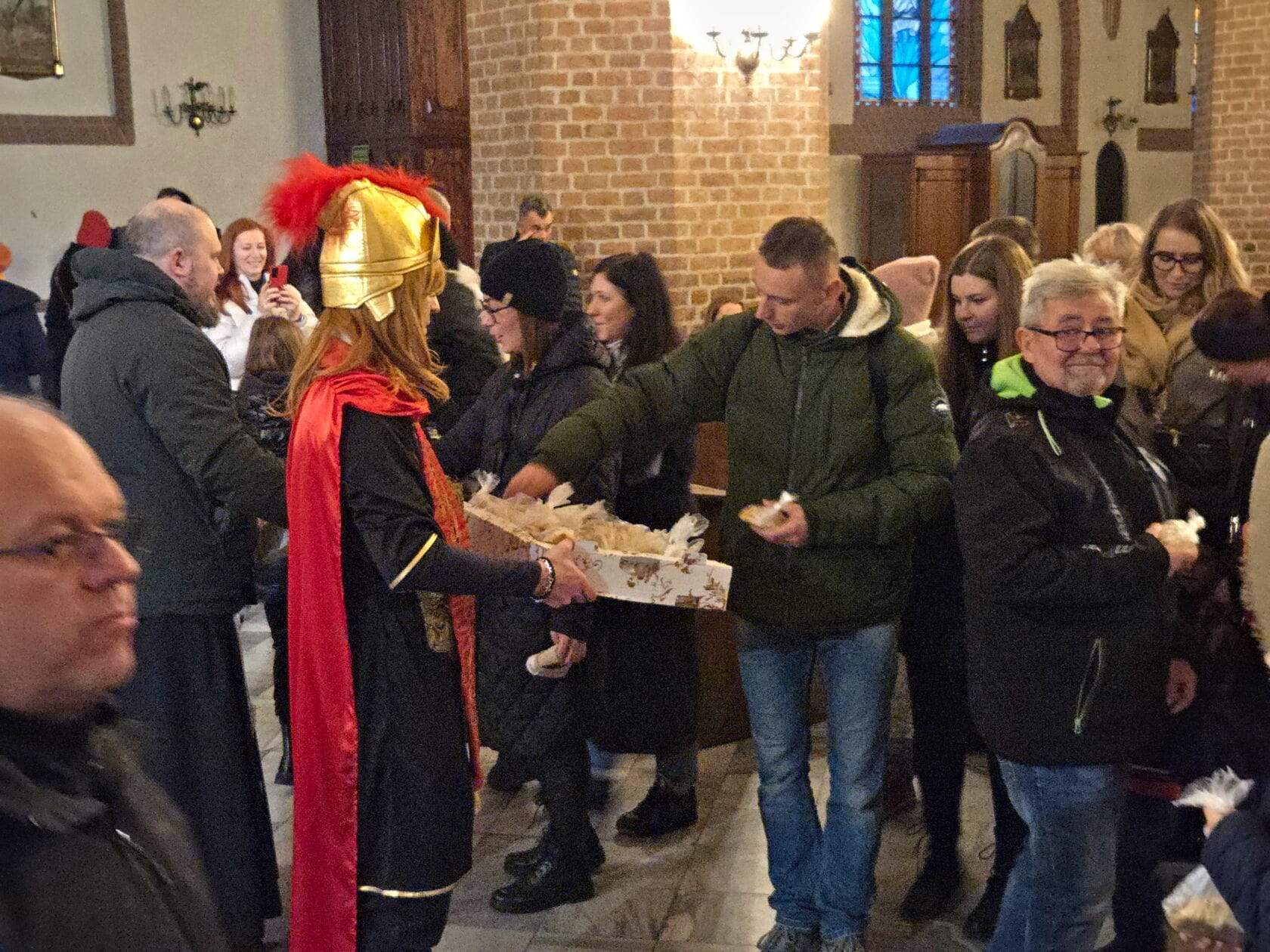 Podczas uroczystości odbyła się wspólna modlitwa oraz krótka część słowno-muzyczna. Nie zabrakło również rogali świętomarcińskich, które tradycyjnie zostały rozdane uczestnikom korowodu. To symbol dzielenia się i budowania wspólnoty – wartości, które od wieków przypisywane są świętu 11 listopada. Święty Marcin z Tours żył w IV wieku. Jako młody żołnierz armii rzymskiej zasłynął gestem podzielenia się płaszczem z napotkanym na drodze zmarzniętym żebrakiem. Ten prosty akt miłosierdzia stał się fundamentem kultu, który rozprzestrzenił się w całej Europie. Po przyjęciu chrztu Marcin został biskupem Tours i do końca życia angażował się w pomoc ubogim. W tradycji ludowej dzień 11 listopada symbolicznie rozpoczynał czas jesiennego wyciszenia i przygotowania do zimy. Mówiono wtedy: „Od świętego Marcina zima się zaczyna.” Był to także moment dzielenia się zapasami – stąd zwyczaj pieczenia rogali, organizowania procesji i wspólnego świętowania. W niektórych regionach pojawiała się również gęś świętomarcińska, związana z legendą, według której to gęsi gęganiem zdradziły miejsce ukrycia Marcina, gdy próbował uniknąć wyboru na biskupa.
