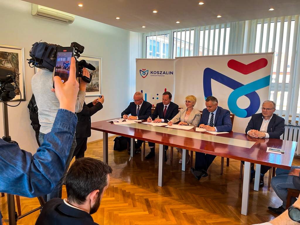 Podpisywanie dokumentów, Koszalin, dziennikarze, kamera