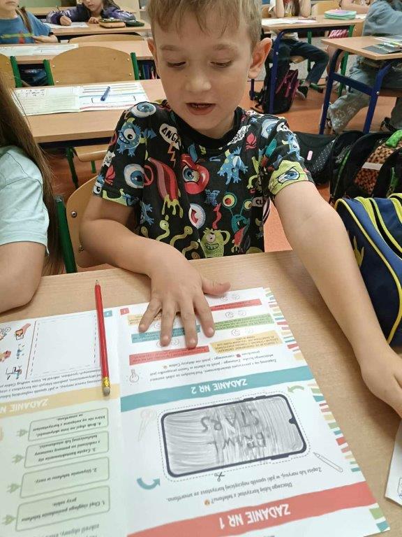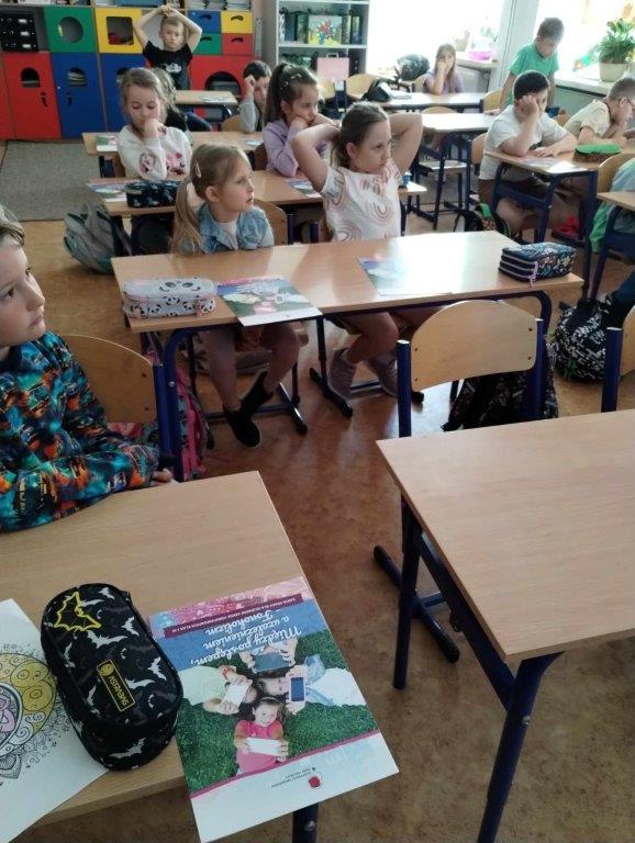 Uczniowie z zaangażowaniem i chęcią przystąpili do pracy. Oglądali filmy edukacyjne, wykonywali zadania w kartach pracy oraz przygotowali plakaty dotyczące bezpieczeństwa w sieci.