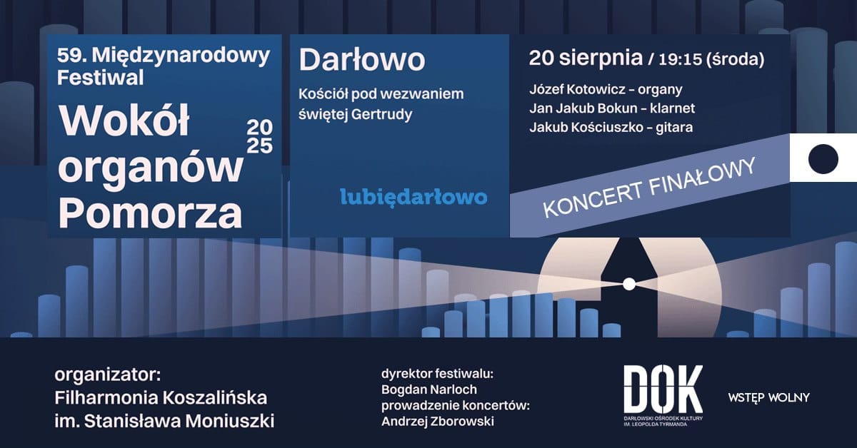 Darłowski Ośrodek Kultury wraz z Filharmonią Koszalińską zapraszają na drugi z pięciu koncertów organowych, który tego lata wybrzmi w Darłowie. Gwarantujemy, że będzie to fascynująca podróż w głąb serca i […]