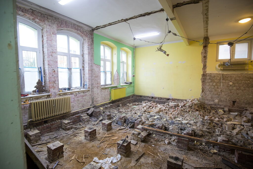 Zadanie, o którym mowa obejmuje swym zakresem prac takie działania jak: wyburzenie ścian działowych celem powiększenia powierzchni docelowej, demontaż istniejącej podłogi i wykonanie nowej nawierzchni, wymianę instalacji elektrycznej oraz zabiegi kosmetyczne takie jak tynkowanie, malowanie itp. Nieskromnie dodam, że marzy mi się w tym miejscu własna – DOK’owska, niezależna pracownia ceramiczna SKŁO44. Zadanie to ma nie tylko polepszyć estetykę tego miejsca, ale także ułatwić i usprawnić działalność nowego Klubu Seniora, który sąsiaduje z nami vis a vis. Pomieszczenie to ma z jednej strony służyć jako mała szatnia i poczekalnia a także jako wspomniana pracownia. Wszystko to z nadpisanym priorytetem, czyli uwzględnieniem potrzeb osób z niepełnosprawnością ruchową – w myśl zasady KULTURA DOSTĘPNA.
