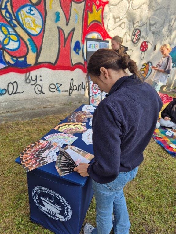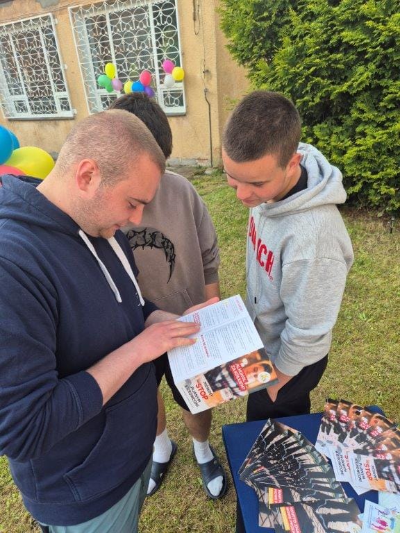 Dodatkowo przygotowany został Punkt Informacyjny, gdzie chętni mogli chwilę zatrzymać się nad ważnymi tematami tj. zagrożenia związane z spożywaniem alkoholu, niebezpieczeństw płonących z niewłaściwego korzystanie z telefonów oraz problemów uzależnień od hazardu.