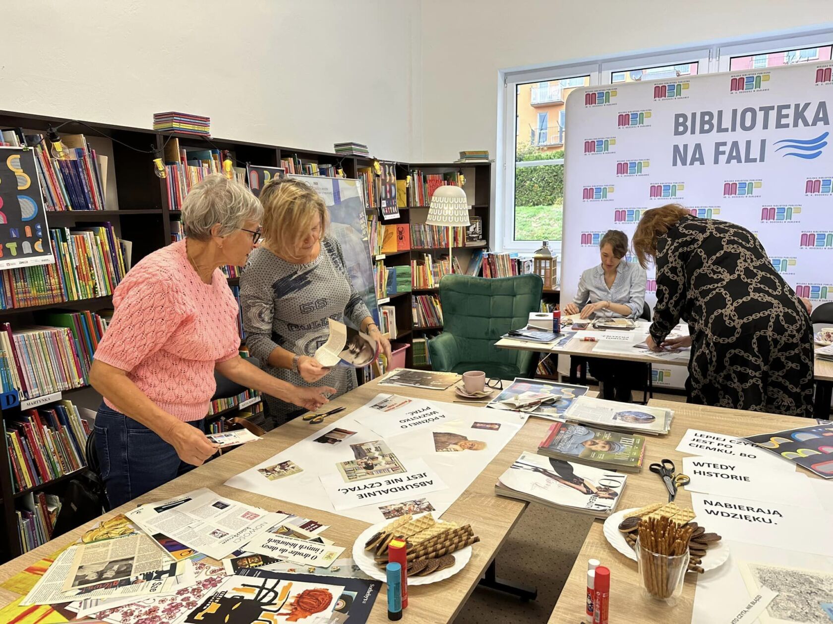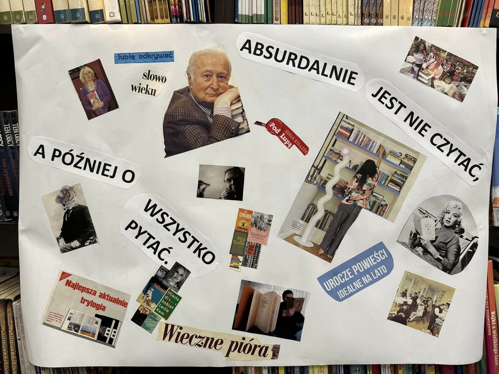 Rozpoczęliśmy od spotkania “Wyklejanki Wisławy Szymborskiej”, gdzie uczestnicy mieli okazję tworzyć kolaże z hasłem przewodnim “ABSURD NIE CZYTAĆ”. Spotkanie było inspirowane działalnością artystyczną poetki.