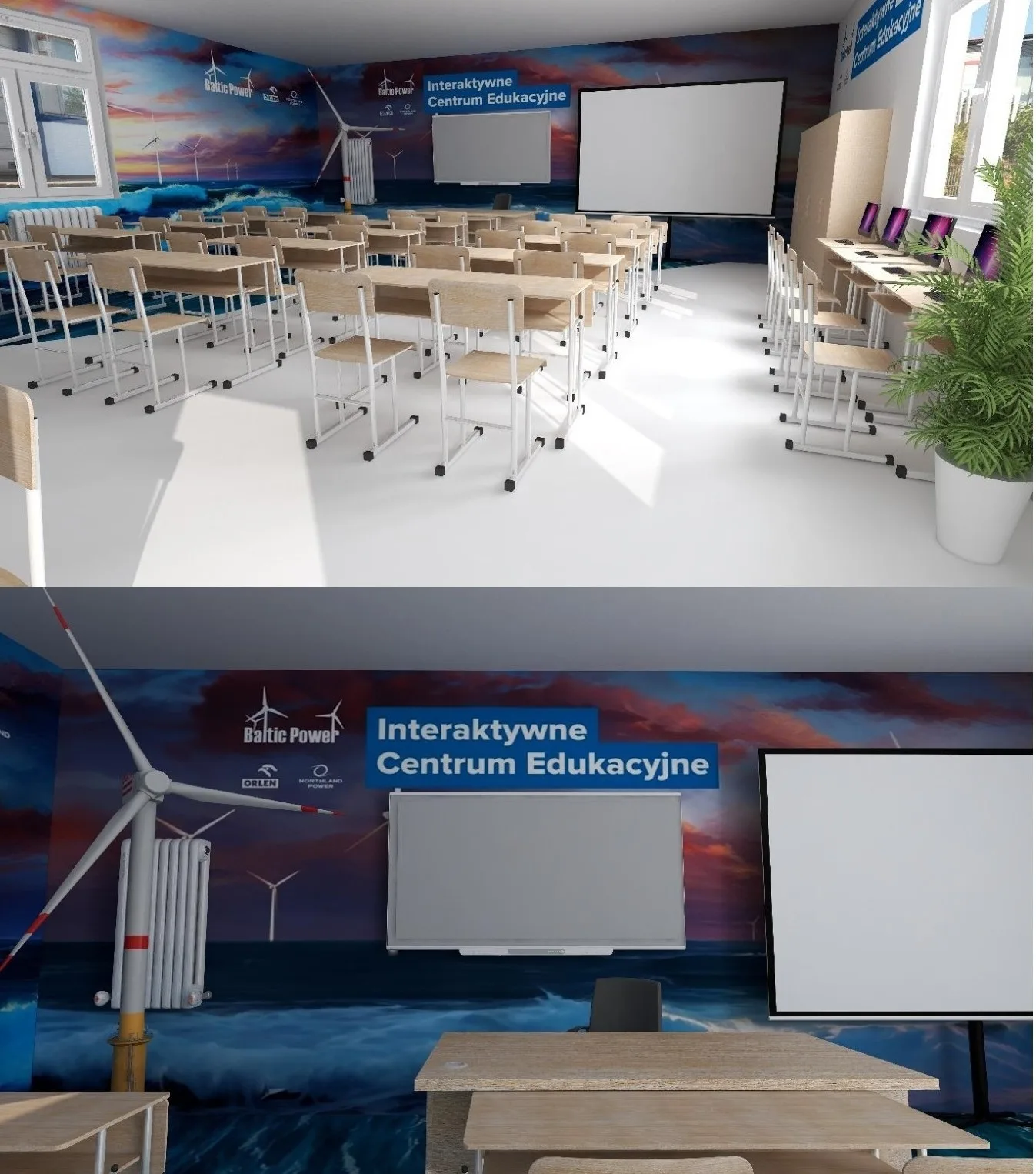 Nowa przestrzeń dydaktyczna będzie funkcjonować jako Interaktywne Centrum Edukacyjne, w którym uczniowie będą zdobywać wiedzę na temat energetyki wiatrowej oraz technologii stosowanych w morskich farmach wiatrowych. Nowoczesne wyposażenie oraz multimedialna aranżacja sali pozwolą na prowadzenie zajęć w atrakcyjnej, praktycznej formie.