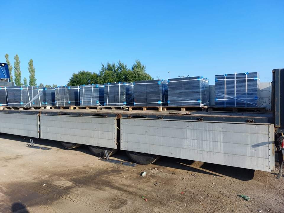Ciężarówka przewożąca palety z materiałami budowlanymi
