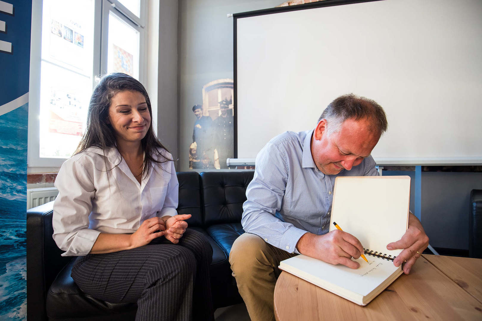 12 sierpnia 2020 roku, wczesnym wieczorem, w darłowskiej Poczekalni Kultury odbyło się spotkanie autorskie z Cezarym Łazarewiczem.