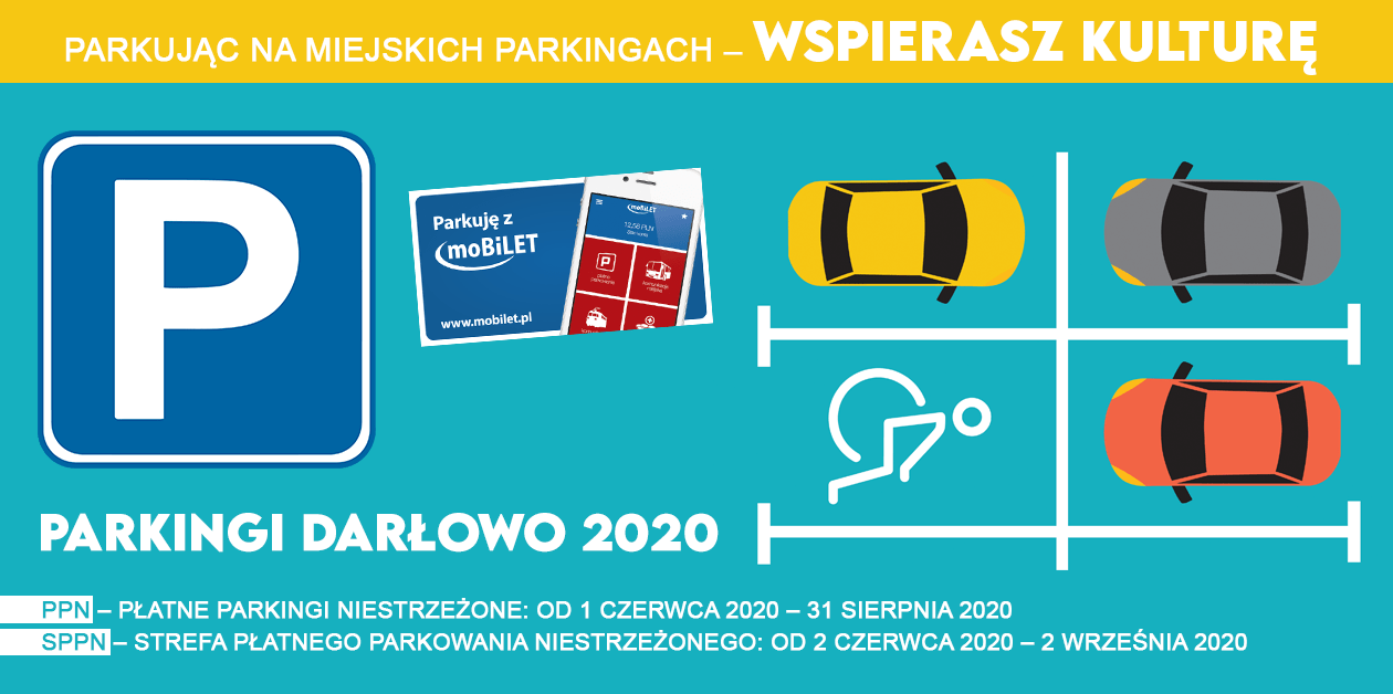 Informacja o parkingach Darłowo 2020, wsparcie kultury.