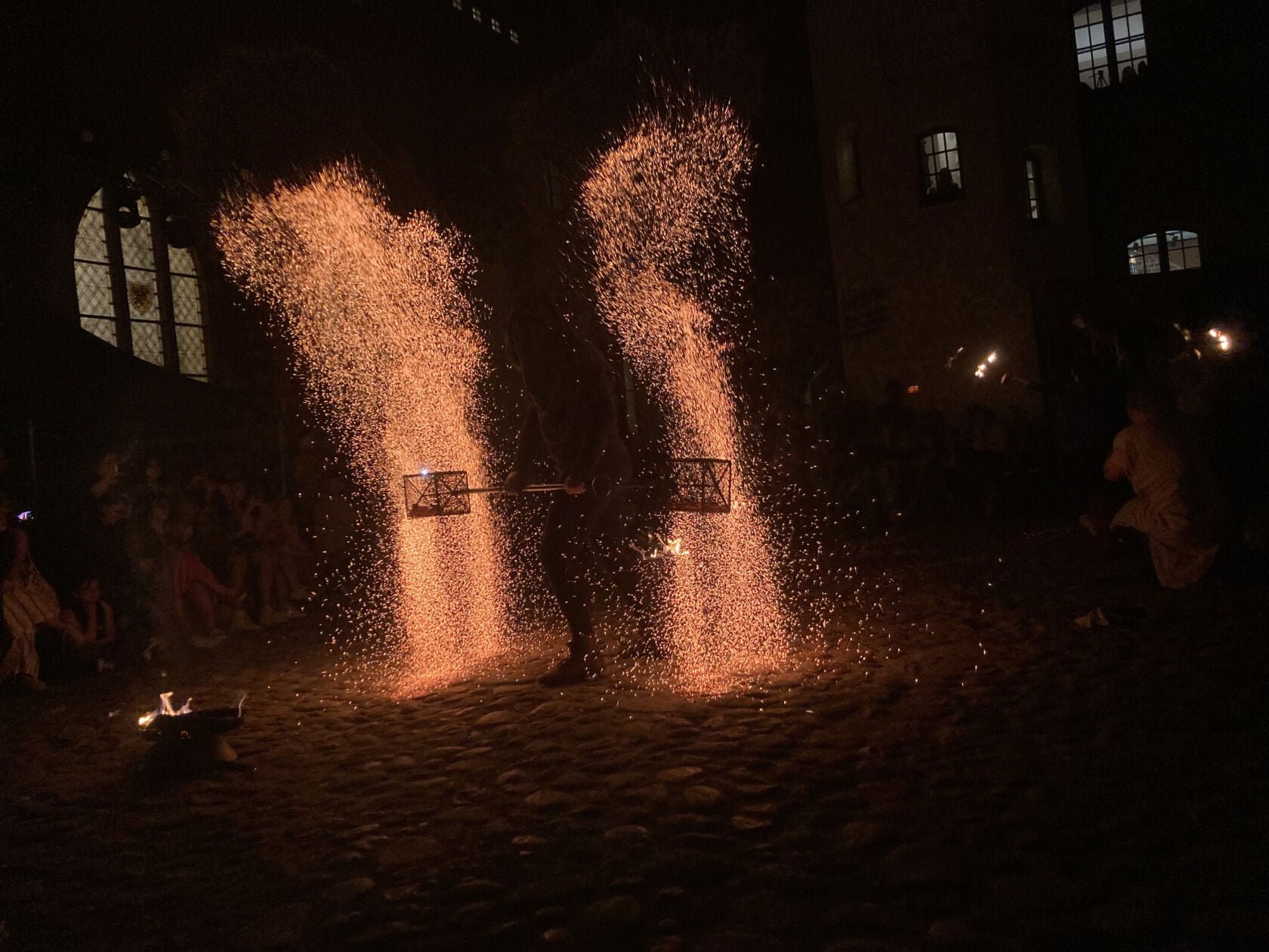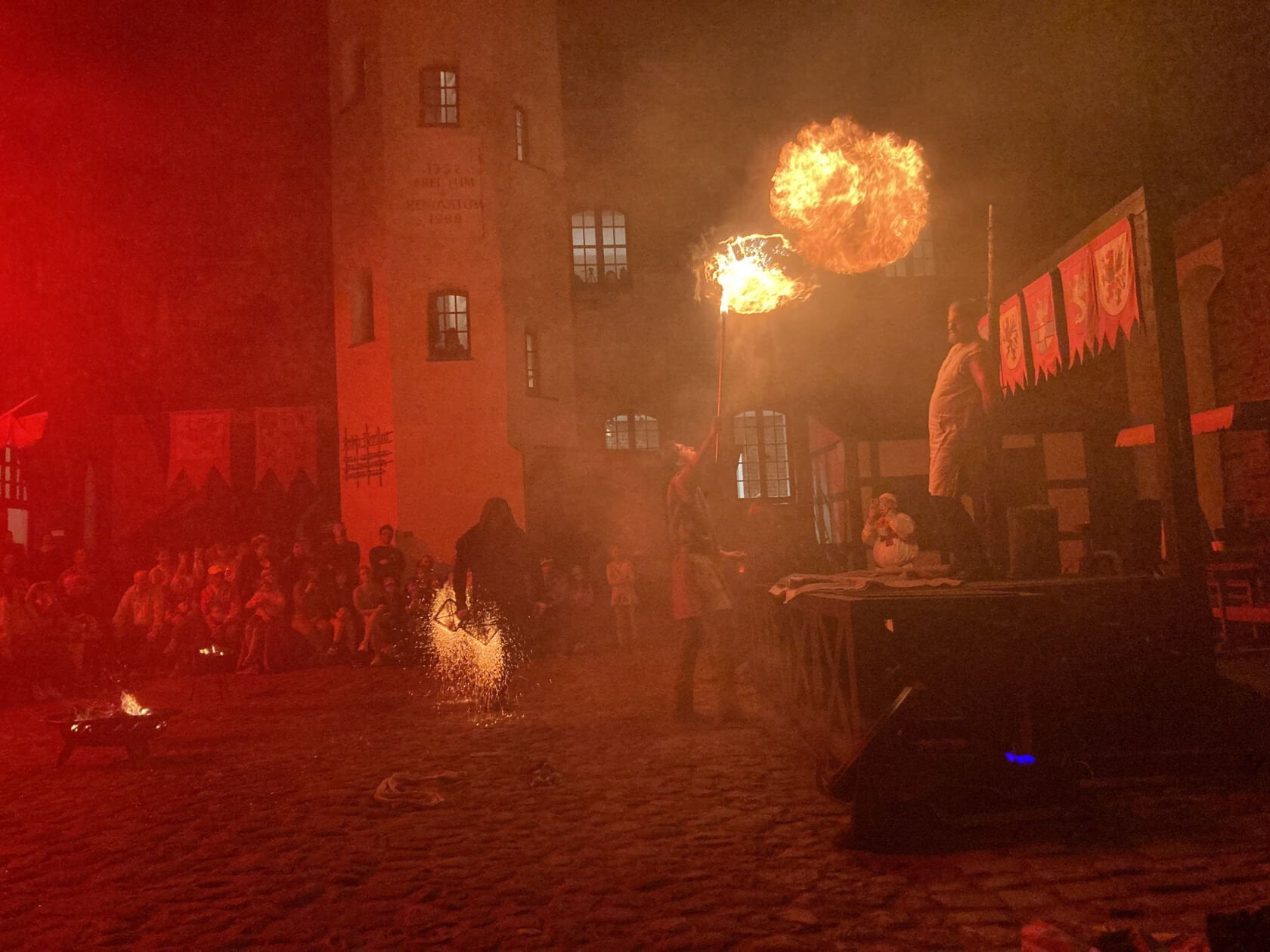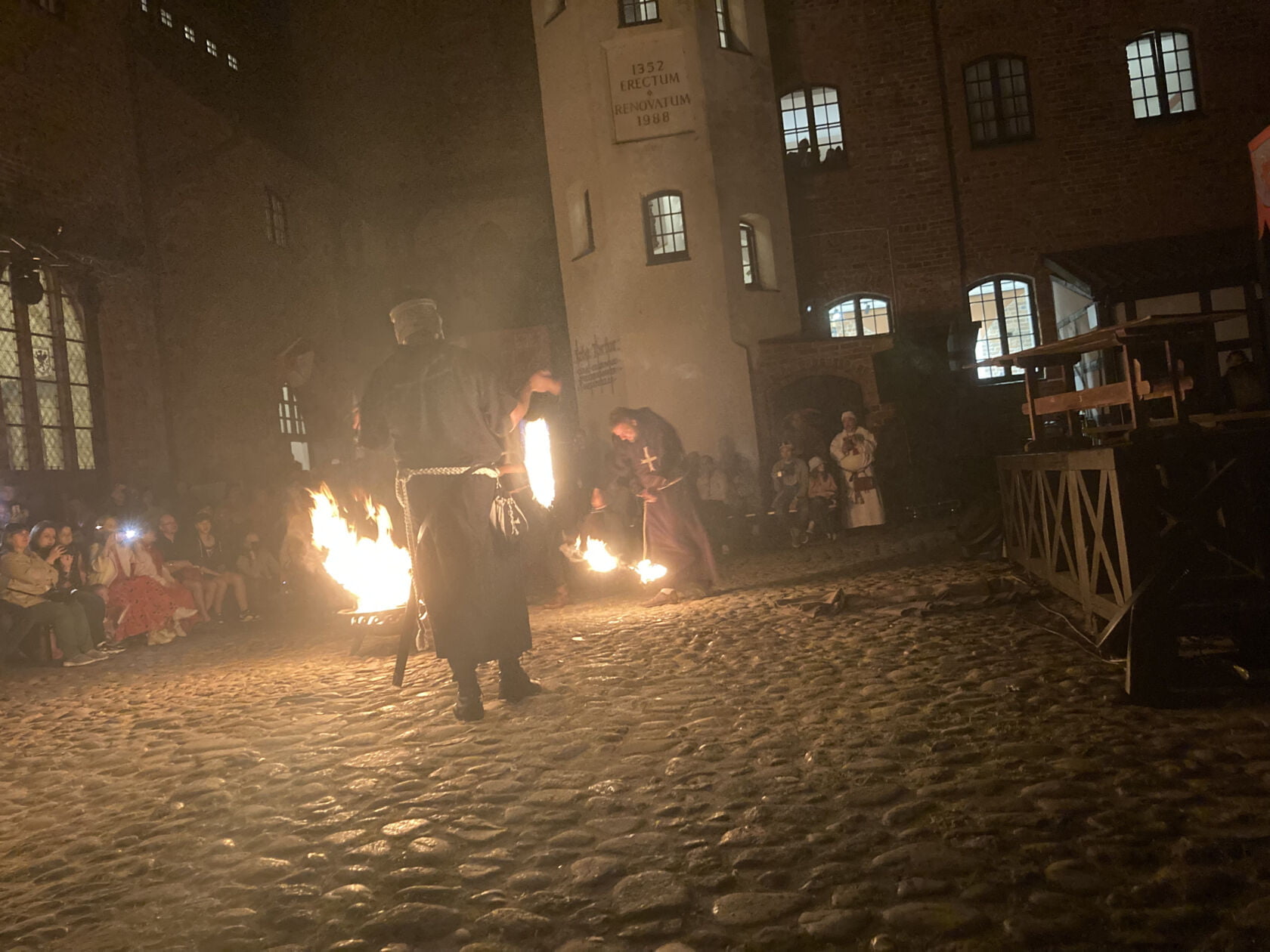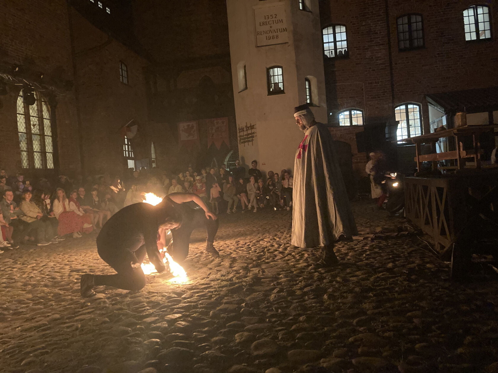 Zwieńczeniem Nocy Muzeów był widowiskowy teatr ognia. Grupa APostFire przedstawiła inscenizację aresztowania, procesu i spalenia na stosie Jakuba de Molay, Ostatniego Wielkiego Mistrza Zakonu Templariuszy.