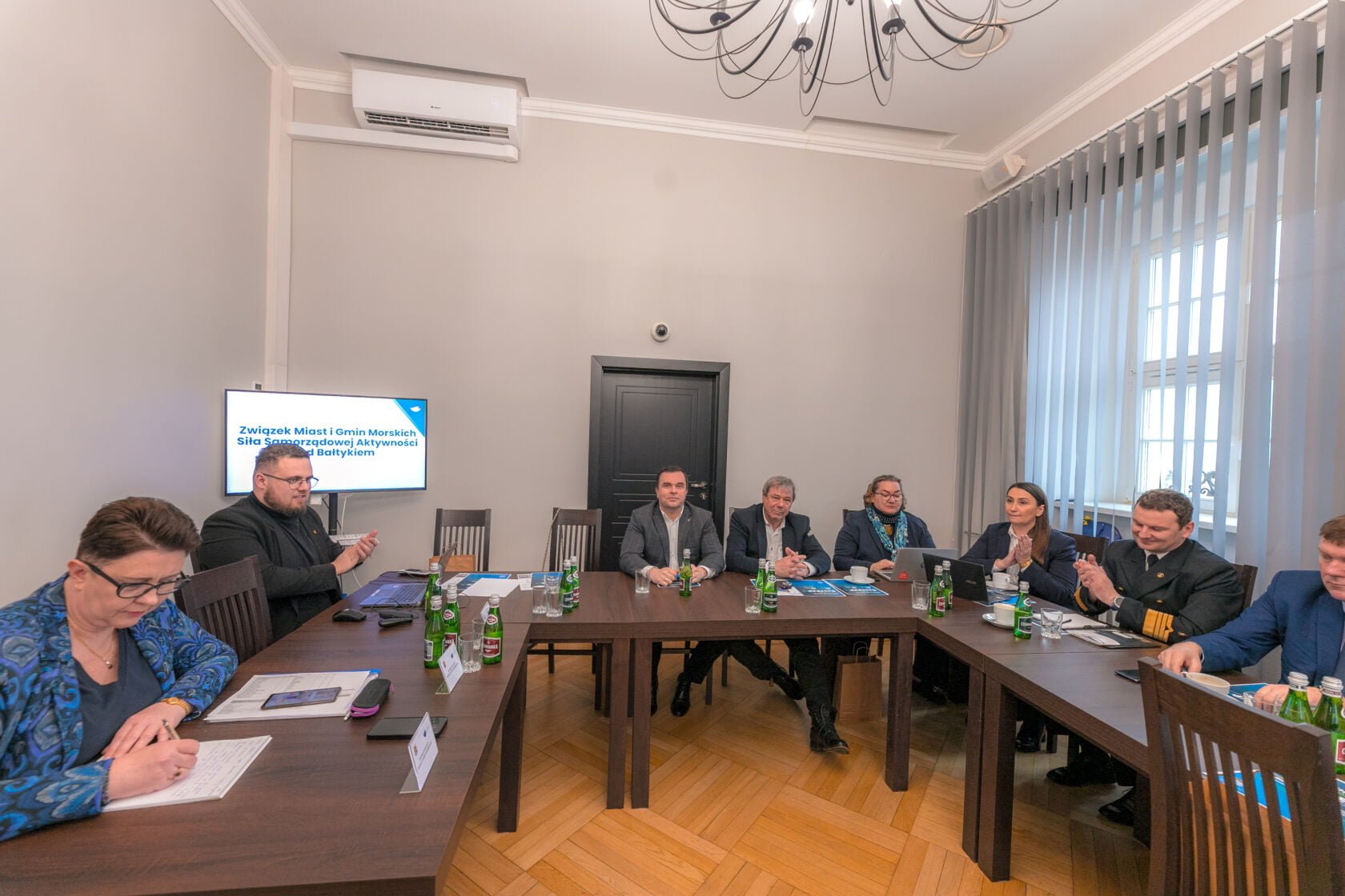 Alan Aleksandrowicz przybliżył obecnym ideę powstania i funkcjonowania Związku, a także największe osiągnięcia, w tym projekt ustawy o portach i przystaniach morskich oraz dokument odnoszący się do ochrony brzegów morskich. Podkreślił, że Związek chce być partnerem dla administracji rządowej, organizacją lobbującą za interesami samorządów nadmorskich. Każdy z 27 samorządów skupionych w strukturach Związku ma inną specyfikę, różne wyzwania, ale cele i metody działania oraz aktywność promocyjna są wspólne. Główne działania Związku w ostatnich latach obejmują promocję bursztynu bałtyckiego, uczestnictwo w targach, organizację konferencji, wydawanie biuletynu Czas Morza. Jednymi z ważniejszych projektów kulturowego dziedzictwa są zbiórki funduszy na odbudowę i eksploatację żaglowca Generał Zaruski oraz łodzi Strażnik Poranka Jacka Stronga. Jeśli chodzi o edukację morską – Związek od 4 lat organizuje Krajowy Konkurs Wiedzy o Morzu wg pomysłu dr Jarosława Kłodzińskiego, w którym młodzież chętnie uczestniczy. ZMiGM realizuje także projekty unijne z programów Interreg oraz Południowego Bałtyku, obecnie BaltSusBoating 2030 i Baltic Sea 2 Land, skupionych głównie na promocji żeglarstwa, marin, wzroście atrakcyjności turystycznej naszego wybrzeża, ale i współpracy międzynarodowej .