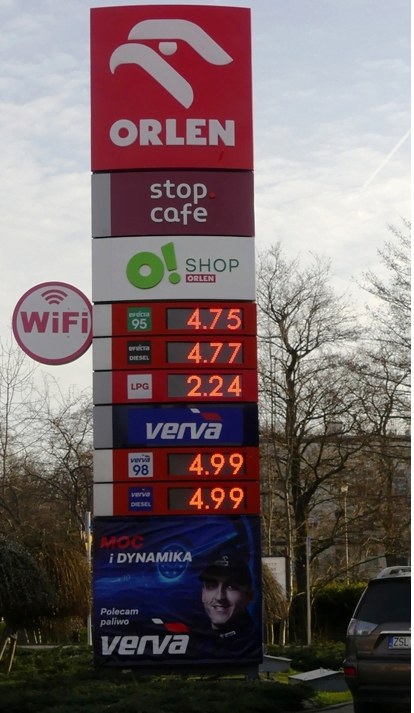 Totem cenowy stacji benzynowej Orlen z reklamą Verva