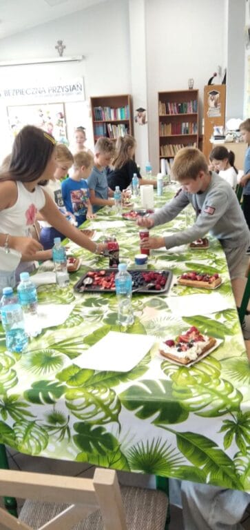 Sporo emocji dostarczyły zajęcia kulinarne na świetlicy, uczestnicy samodzielnie przygotowywali słodkie przysmaki, zajadając się goframi i naleśnikami. W wolnych chwilach dzieci chętnie korzystały z piłkarzyków i cymbergajów, które stały się ulubioną rozrywką każdego dnia.