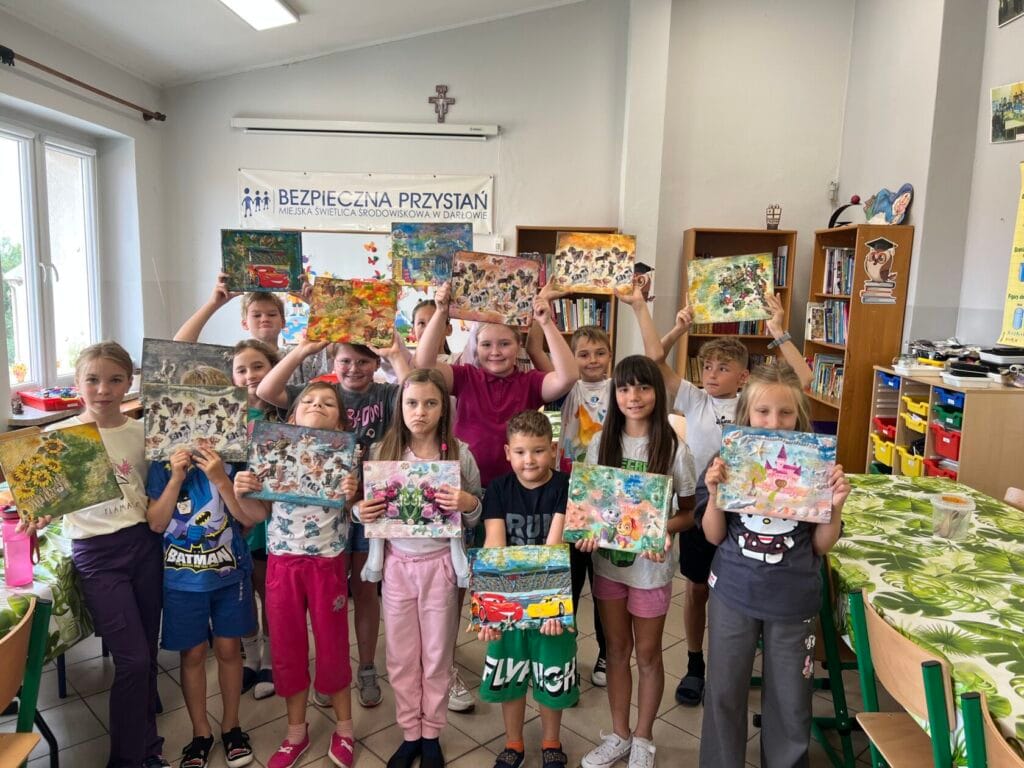 Zwieńczeniem turnusu było uroczyste wręczenie dyplomów, medali i statuetek dla najbardziej aktywnych uczestników. Każde dziecko zabrało także swoje prace plastyczne na pamiątkę, a wspomnienia z półkolonii na długo pozostaną w ich pamięci.