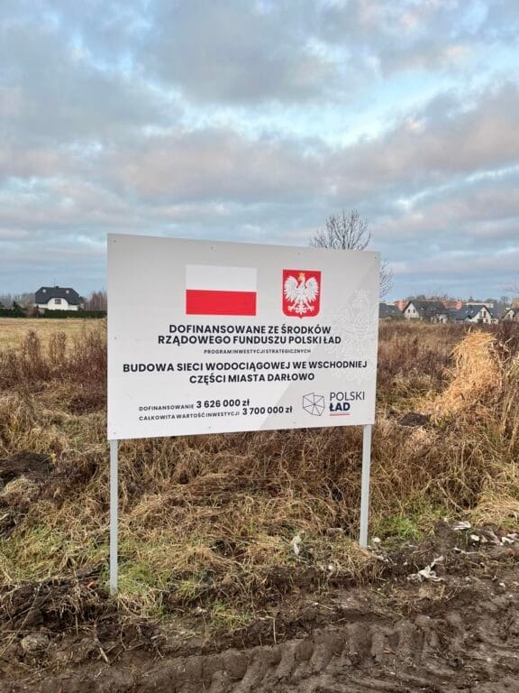 Budowa sieci wodociągowej we wschodniej części Miasta Darłowo. Wniosek dofinansowany w ramach Rządowego Funduszu Polski Ład: Program Inwestycji Strategicznych – edycja szósta – PGR.