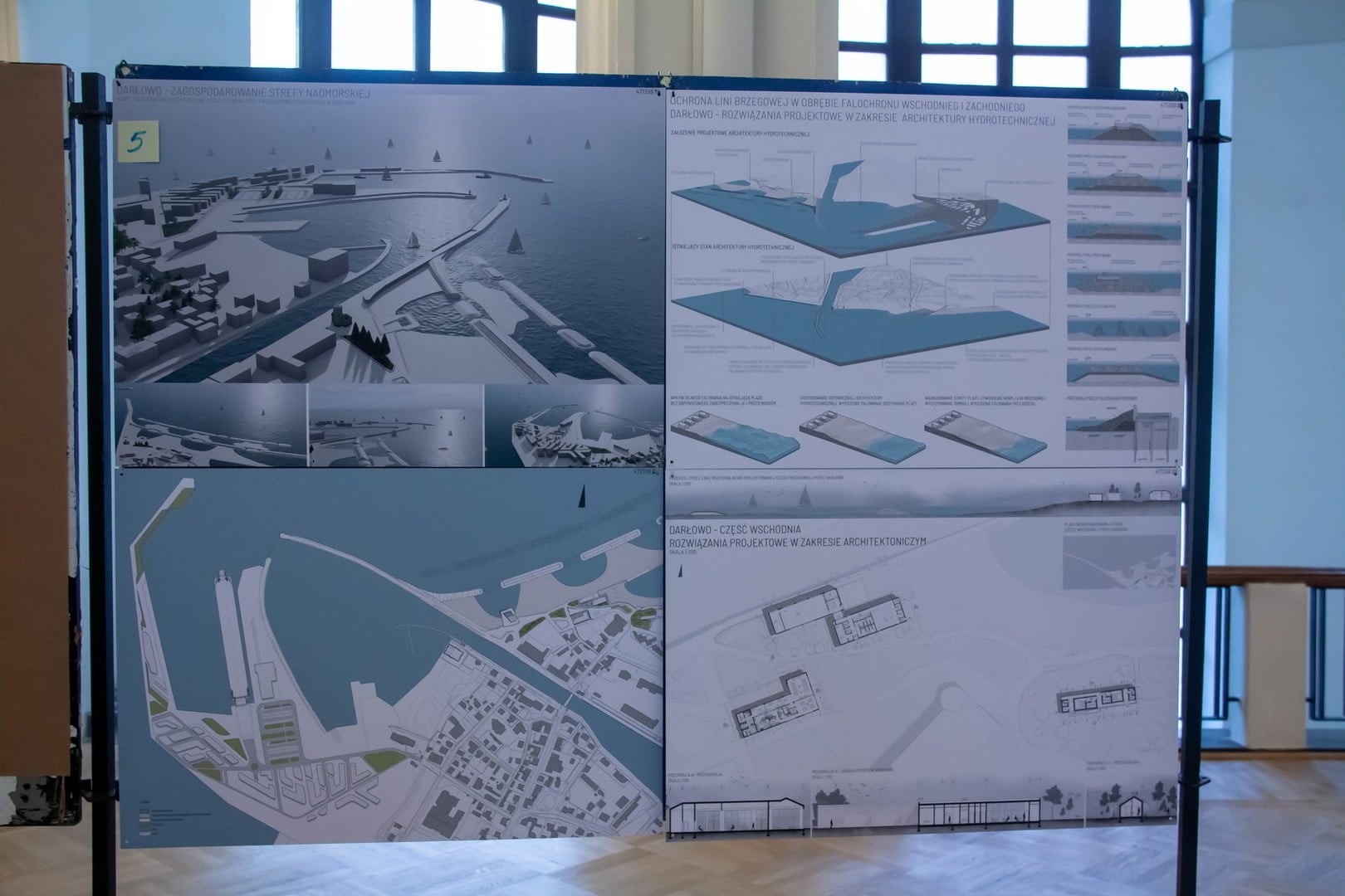 Nowy terminal portowy przy kompletnie przebudowanym falochronie zachodnim, nowoczesna przestrzeń miejska, która powstałaby dzięki przebudowie wejścia do darłowskiego portu. Do tego restauracje, przebieralnie, sauny i mnóstwo ciekawych miejsc w mocno przebudowanej części portowej miasta. Do niedawna ambitne projekty studentów Wydziału Architektury Politechniki Gdańskiej można było oglądać w siedzibie uczelni. Dzięki współpracy zawiązanej z miastem Darłowo, prace na dużych tablicach będzie można zobaczyć teraz w miejscu, którego zaproponowane koncepcje bezpośrednio dotyczą.
