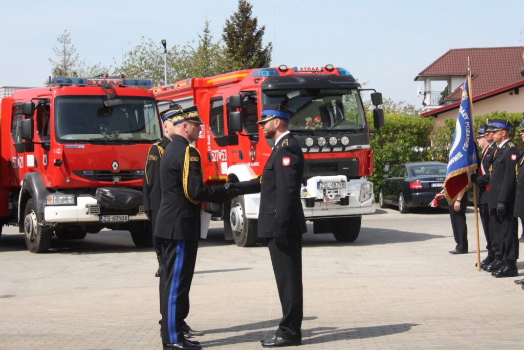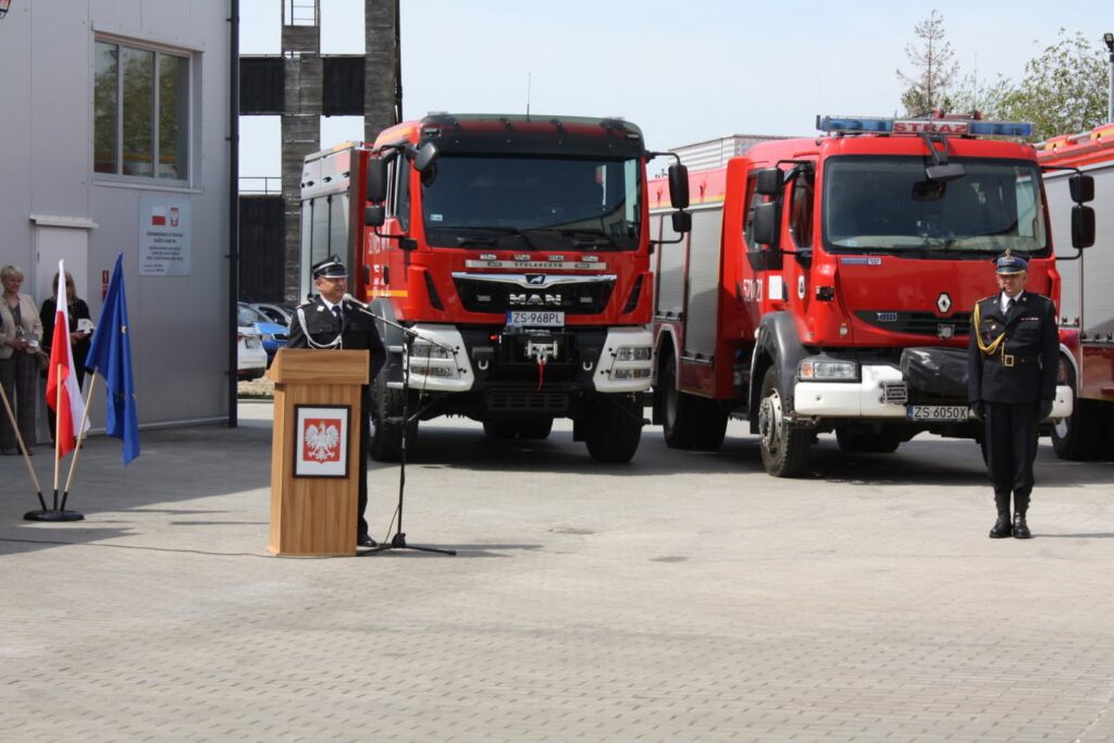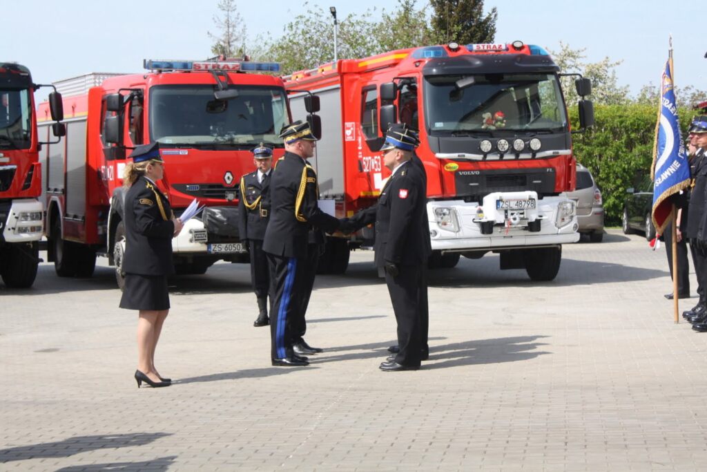Uroczysty apel rozpoczął się od złożenia meldunku przez dowódcę uroczystości st. kpt. Damiana Tomczyka Zachodniopomorskiemu Komendantowi Wojewódzkiemu Państwowej Straży Pożarnej nadbryg. Jarosławowi Tomczykowi.