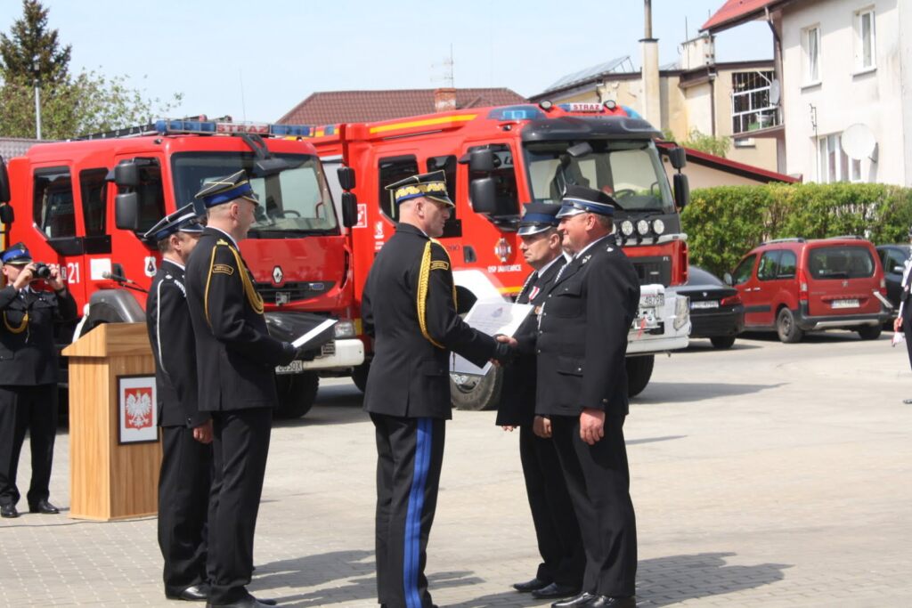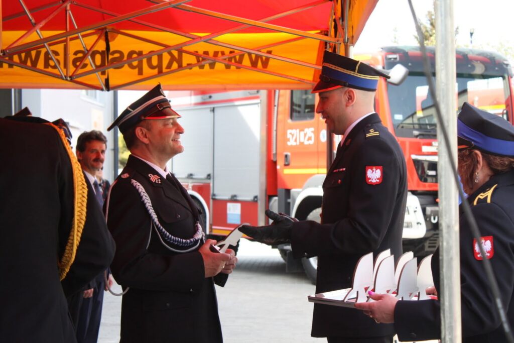 W związku z tegorocznymi obchodami jubileuszu 30-lecia powołania Państwowej Straży Pożarnej, Komendant Powiatowy PSP w Sławnie bryg. Paweł Faryno wręczył statuetki upamiętniające to wydarzenie zaproszonym gościom oraz strażakom.