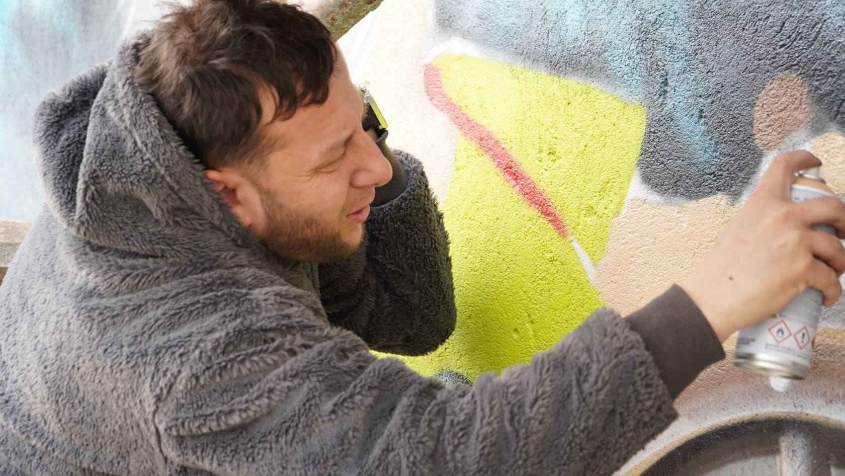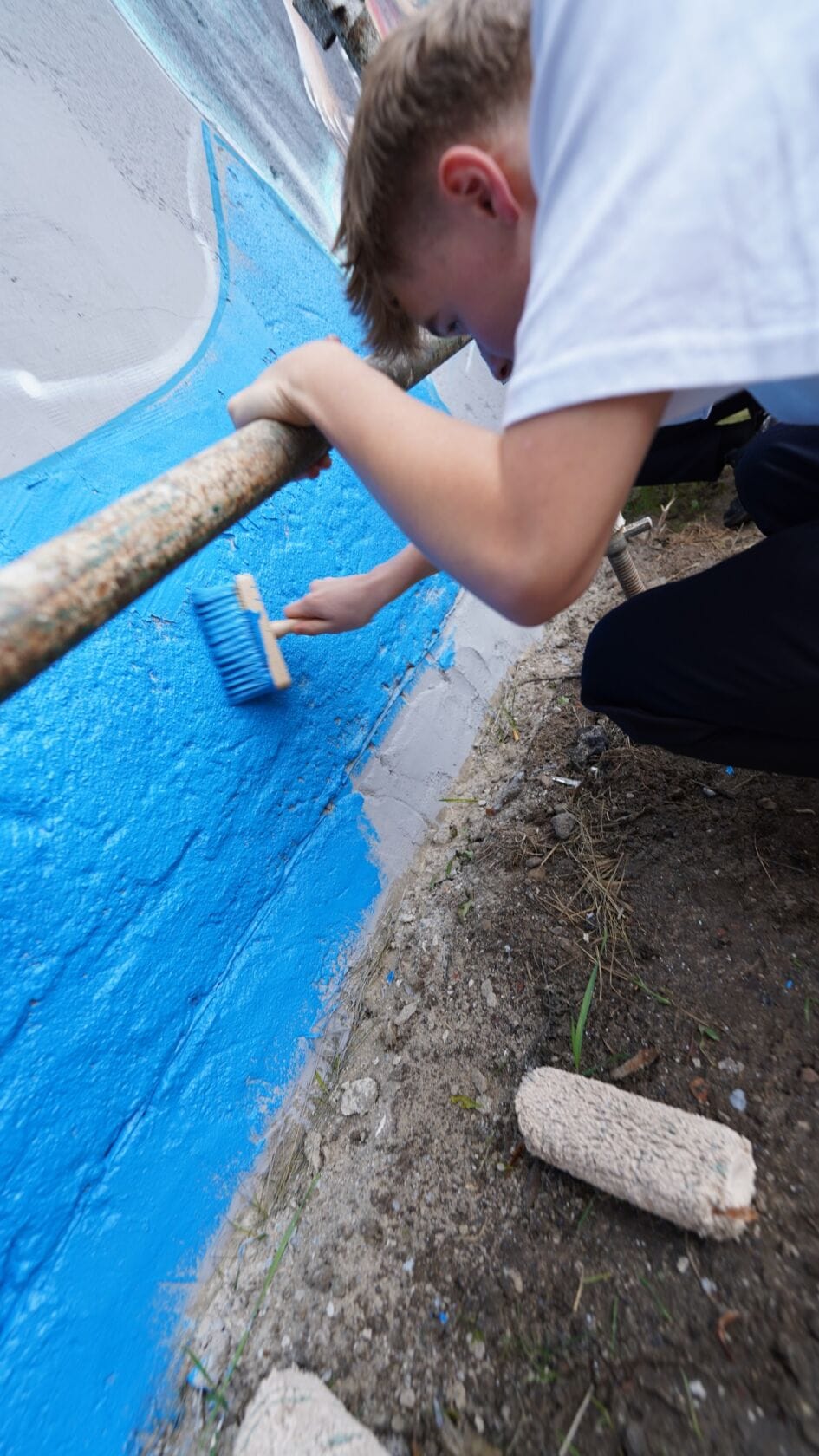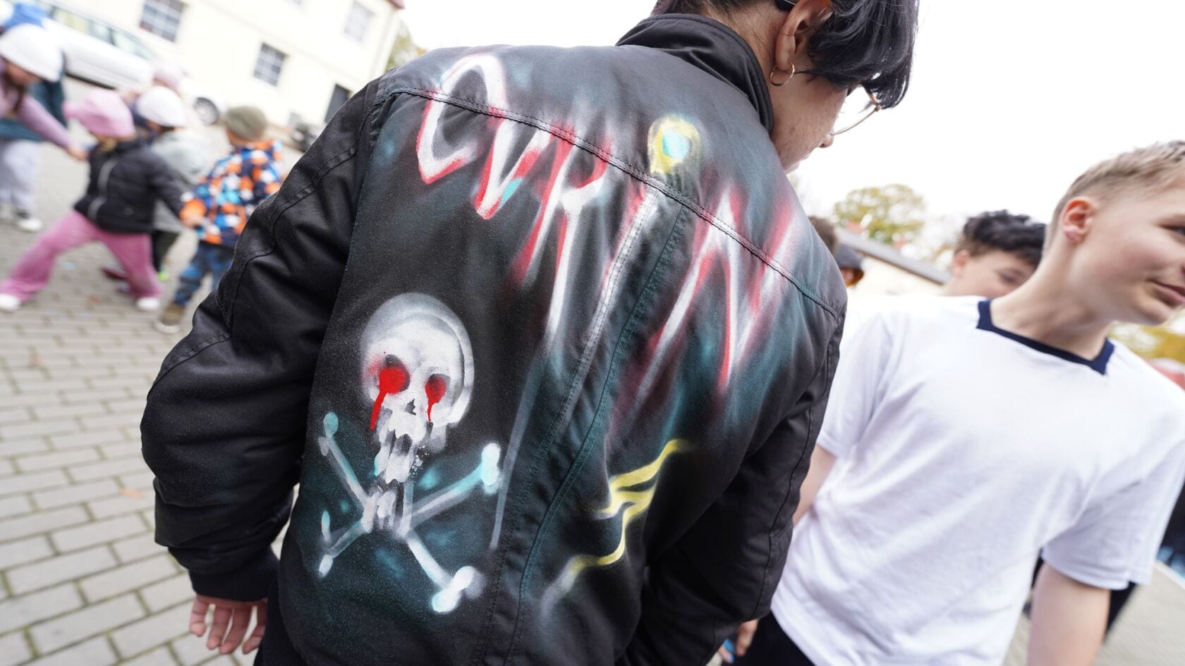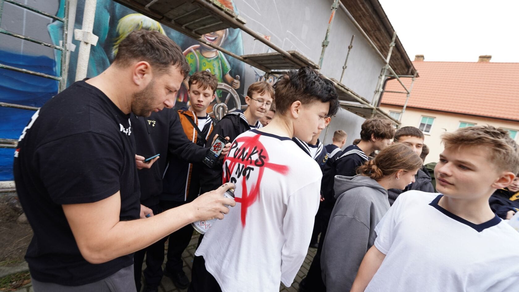 Jak się okazało, nie tylko ściana stała się płótnem. Część uczestników zakończyła dzień z farbą na koszulkach, kurtkach i butach, pamiątka po wspólnej pracy gwarantowana.
