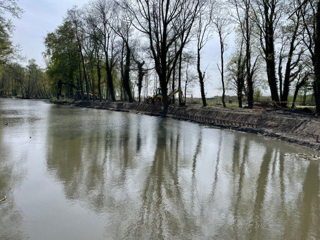Prace dotyczące odtworzenia zbiornika wodnego w parku leśnym przy ulicy Morskiej.