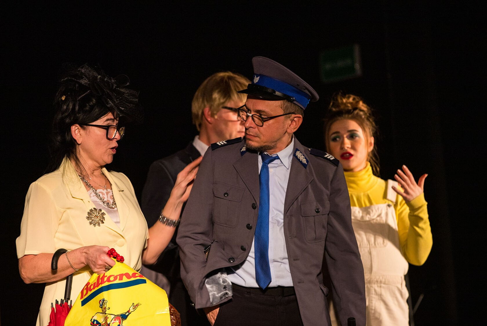Pod dłuższej przerwie Widzowie mogli ponownie zobaczyć lokalną, amatorską grupę teatralną występującą pod szyldem NASZ TEATR z udziałem aktorów: Grzegorza Bieleckiego, Marioli Czesnowskiej, Grzegorza Duszyńskiego, Katarzyny Krawczyk, Aleksandry Kwiatkowskiej, Ewy Majdańskiej, Pauliny Stawczyk, Jana Schwarzlose, Krzysztofa Walków i wspomnianej reżyser w roli o dwóch twarzach. Ważną funkcję – inspicjenta i suflera, pełniła sprawdzona od lat Bożena Górnik, gościnnie wystąpił Dariusz Kos a o światło, dźwięk i obsługę techniczną zadbał Robert Gorgol z Darłowskiego Ośrodka Kultury.