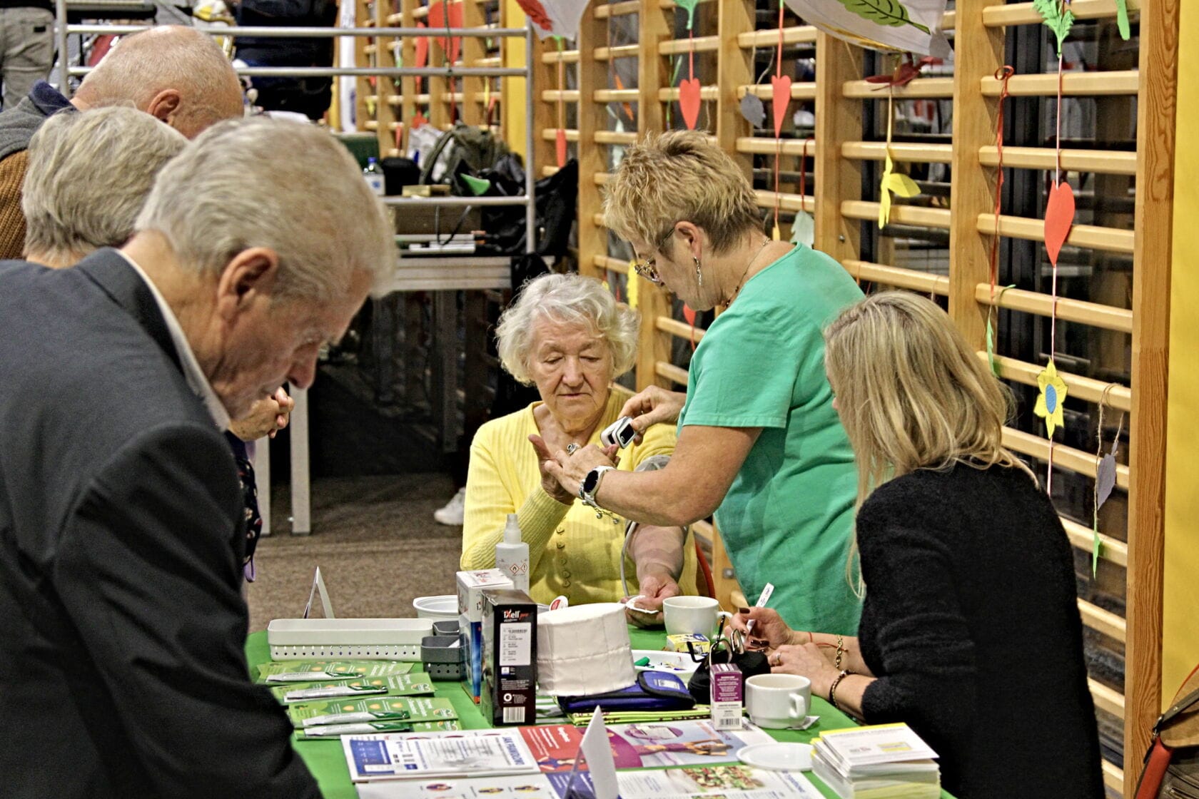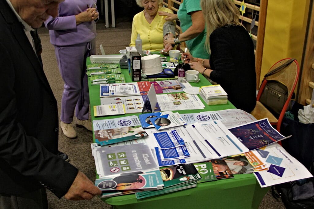 Podczas spotkania darłowskich seniorów nie można było nie zauważyć zielonego stoiska PomagaMy, poświęconego tematyce zdrowia i profilaktyki uzależnień. Uczestnicy spotkania mieli możliwość porozmawiać na temat swojego zdrowia z pracownikami ochrony zdrowia.