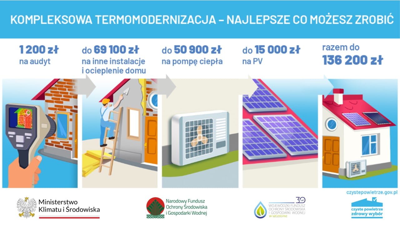 Zanim przystąpisz do programu, warto jest wykonać audyt energetyczny, to dokument opracowany przez specjalistę, który pokazuje co w domu należy docieplić, zainstalować i wymienić w ramach termomodernizacji, aby była ona kompleksowa. Taka kompleksowa termomodernizacja umożliwia otrzymanie najwyższej dotacji, a później płacenie niższych rachunków.