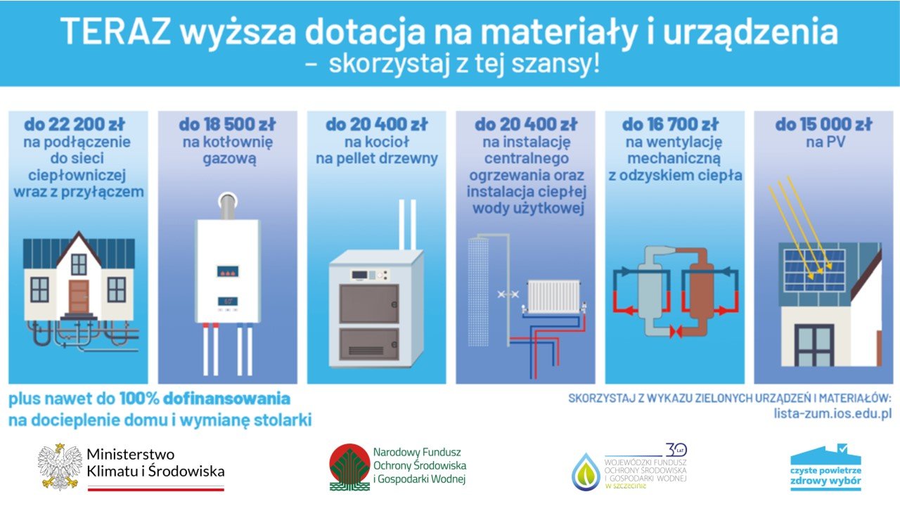 Warto zapoznać się z programem Czyste Powietrze, który oferuje nie tylko bezzwrotne wsparcie finansowe przyznawane przez Wojewódzkie Fundusze Ochrony Środowiska i Gospodarki Wodnej (WFOŚiGW). Inwestycja, którą możesz sfinansować z Programu pozwoli na znaczne zmniejszenie zużycia energii przy utrzymaniu bezpieczeństwa i komfortu cieplnego w domu, a przy tym przyniesie niższe rachunki za ogrzewanie.
