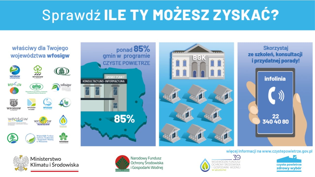 O Program możesz dopytać w naszym punkcie konsultacyjno – informacyjnym. Tutaj otrzymasz wsparcie w przygotowaniu i złożeniu wniosku do programu Czyste Powietrze.