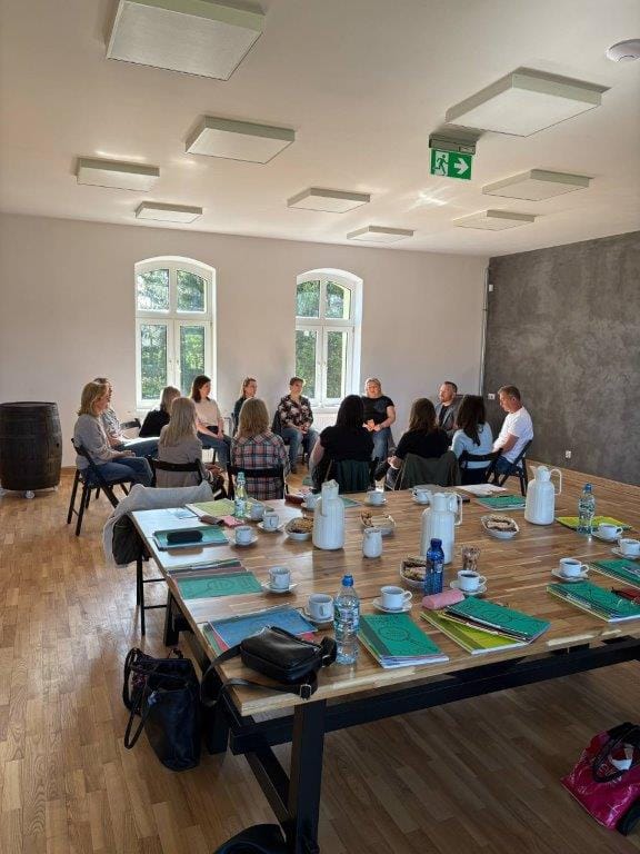 Spotkanie pracowników w jasnym pokoju konferencyjnym