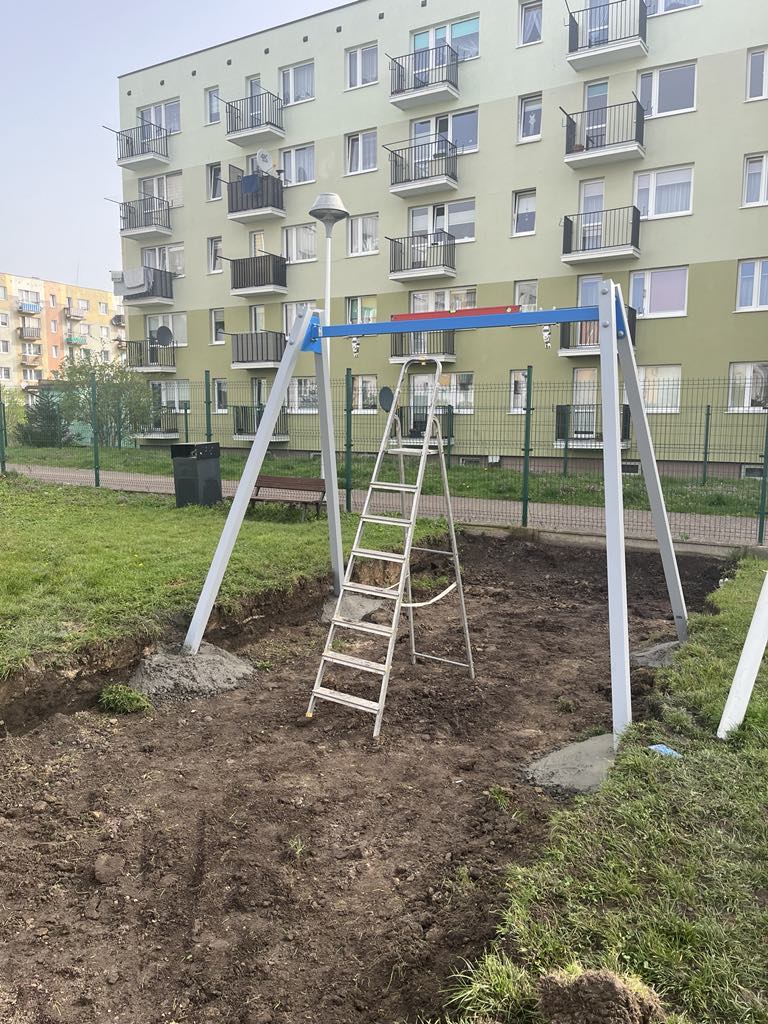 Rozbudowa infrastruktury placu zabaw zlokalizowanego przy ulicy Króla Eryka Pomorskiego w nadmorskim Darłowie, poprzez zakup i montaż nowych urządzeń zabawowych – Huśtawki bocianie gniazdo, Linarium „Piramida” oraz Karuzeli