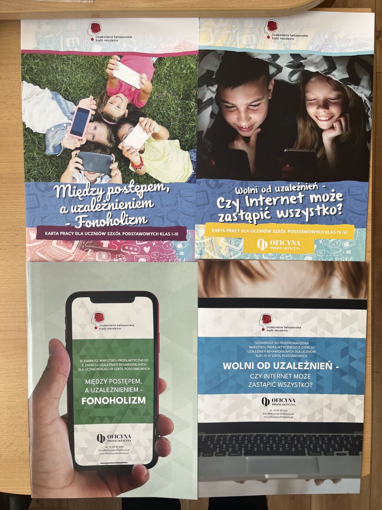 W klasach I – III zostaną przeprowadzone zajęcia pt. Między postępem, a uzależnieniem Fonoholizm, w klasach IV – VI – zajęcia pt. Wolni od uzależnień – Czy Internet może zastąpić wszystko, a w klasach VII – VIII – zajęcia pt. Sieć uzależnienia – surfuj bezpiecznie po Internecie.