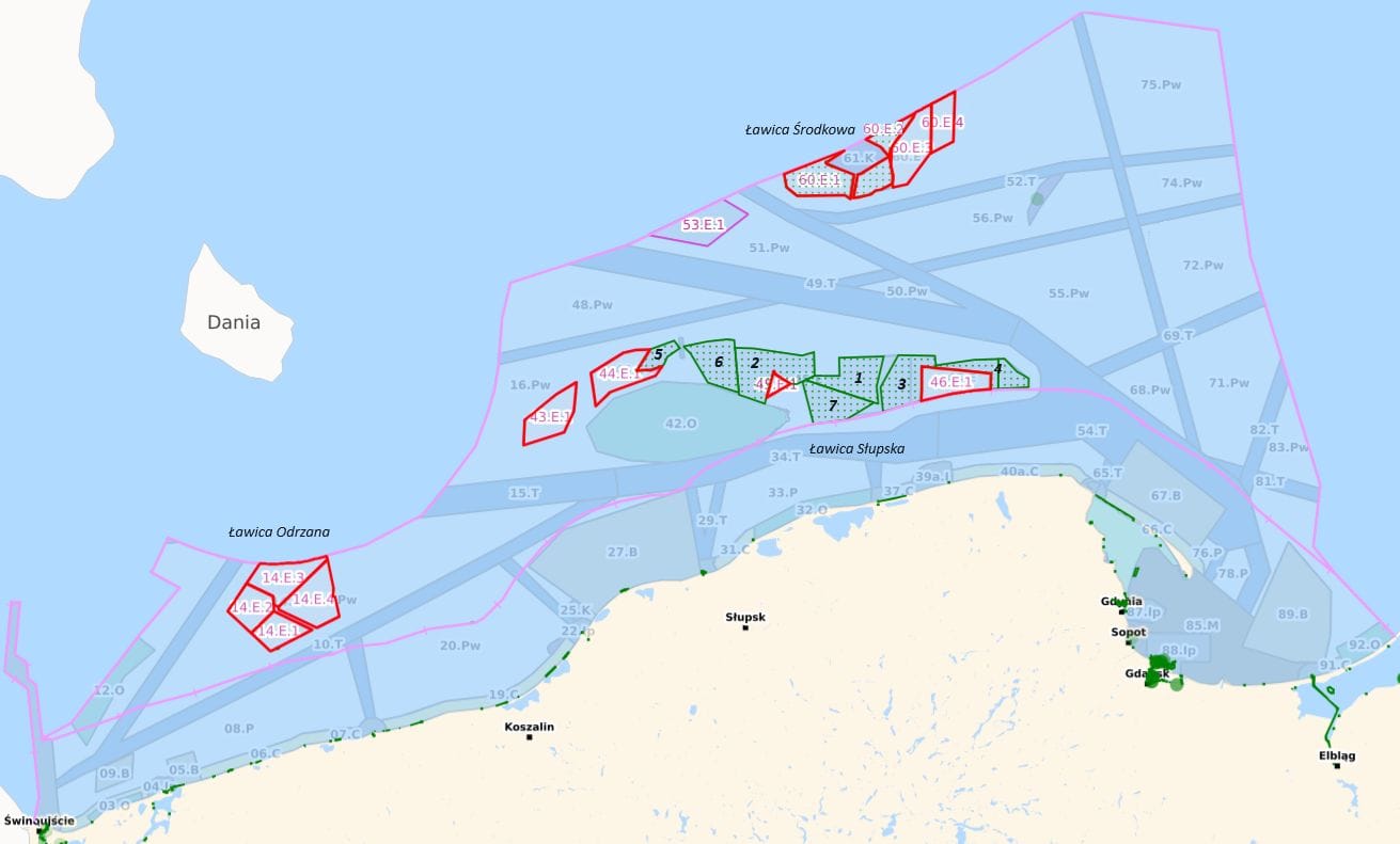 Projekty morskich farm wiatrowych będą rozwijane w polskiej wyłącznej strefie ekonomicznej Morza Bałtyckiego na obszarze wyznaczonym w planie zagospodarowania obszarów morskich w rejonie Ławicy Słupskiej, Ławicy Środkowej i Ławicy Odrzanej.
