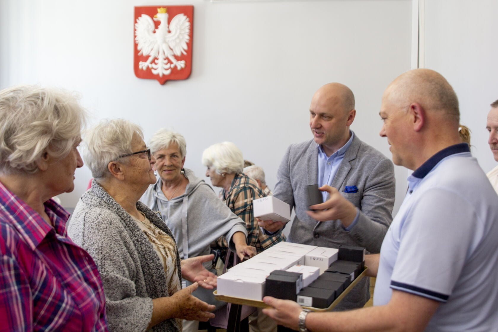 p. Elżbieta lat 84 – Jestem osobą samotną. Ta opaska to dla mnie szansa, że jak coś się będzie źle się działo ze mną, to mój opiekun Zbyszek natychmiast zareaguje. Cieszę się , że opaskę dostałam od burmistrza.