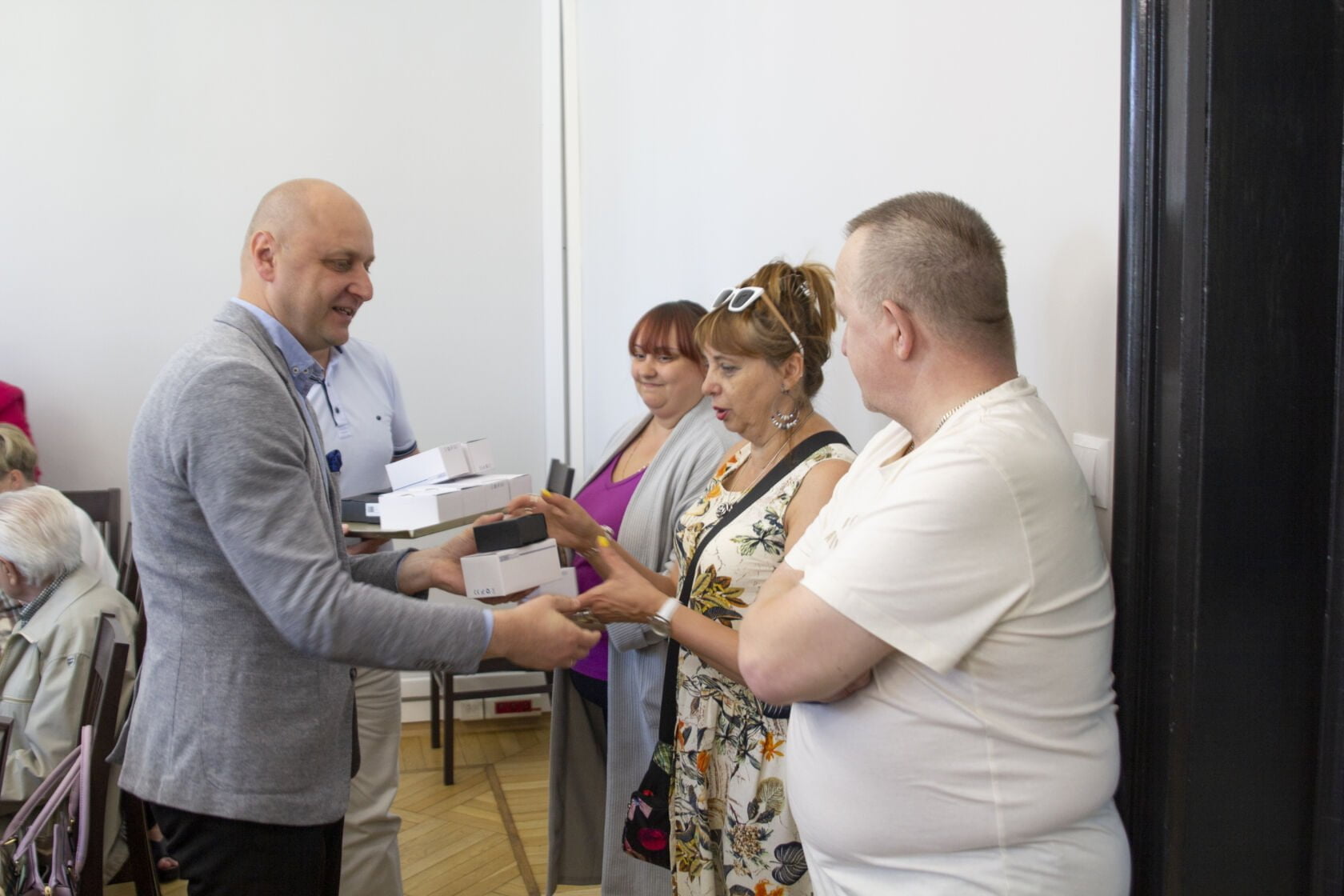 W dniu dzisiejszym w sali konferencyjnej Ratusza, zastępca burmistrza Rafał Nagórski wręczył 33 darłowskim seniorom- mającym powyżej 70 roku życia – opaski SOS życia. Przypomnijmy, że zrealizowany teraz projekt OPASKI SOS DLA SENIORÓW w glosowaniu Budżetu Obywatelskiego w 2022 r. otrzymał 384 głosy i zajął II miejsce w kategorii projekty społeczne. Projekt został zgłoszony przez p. Teresę Grywińską-Socha.