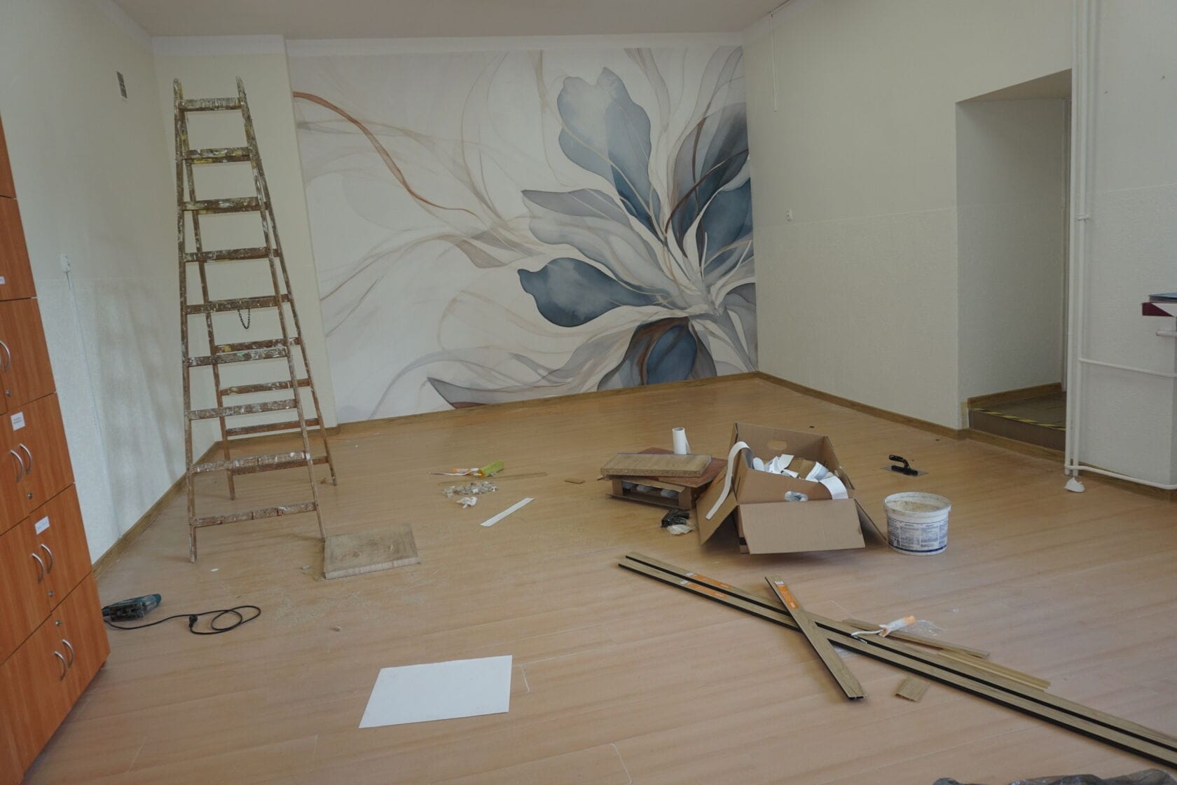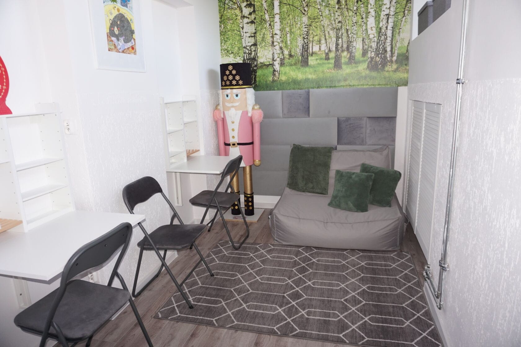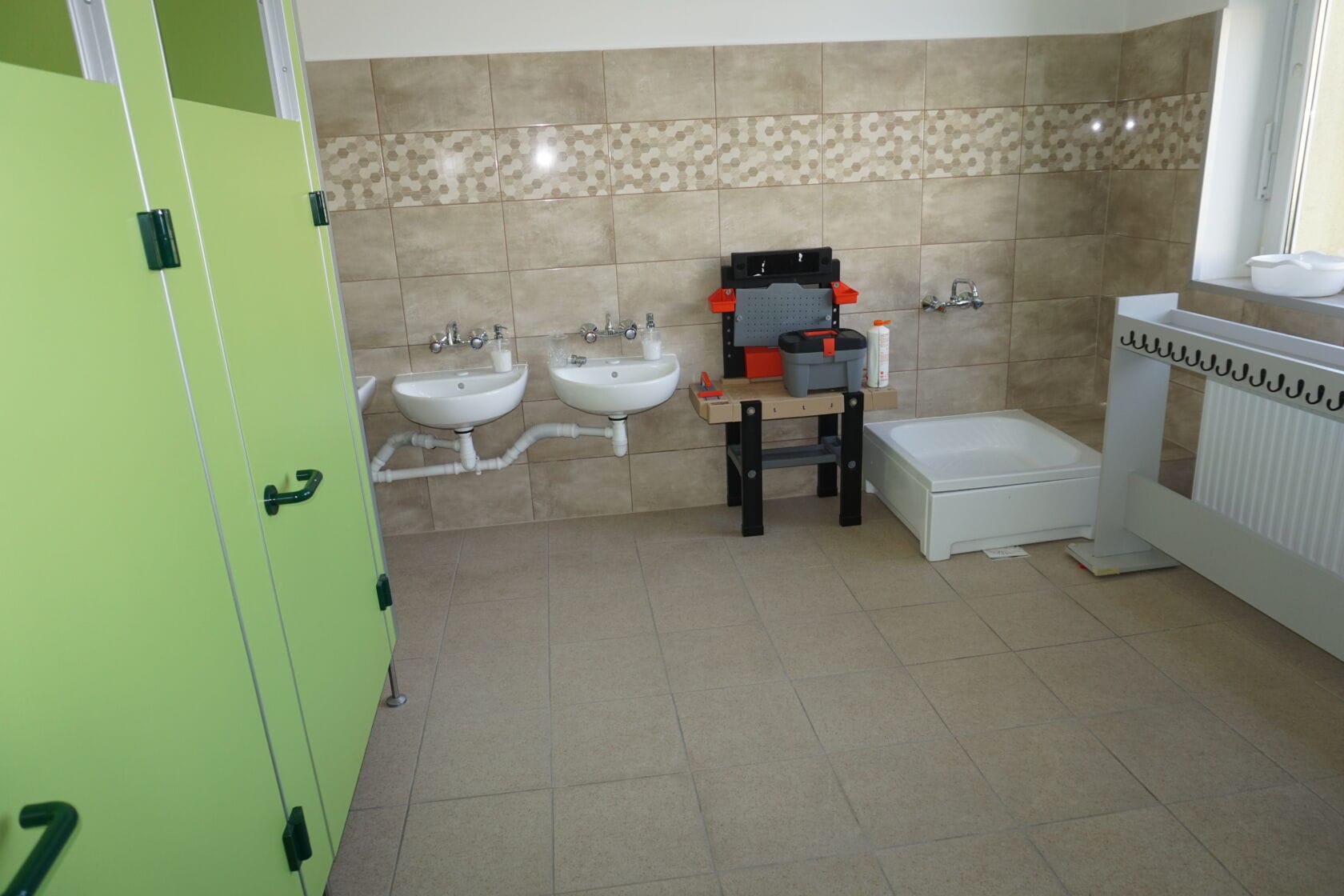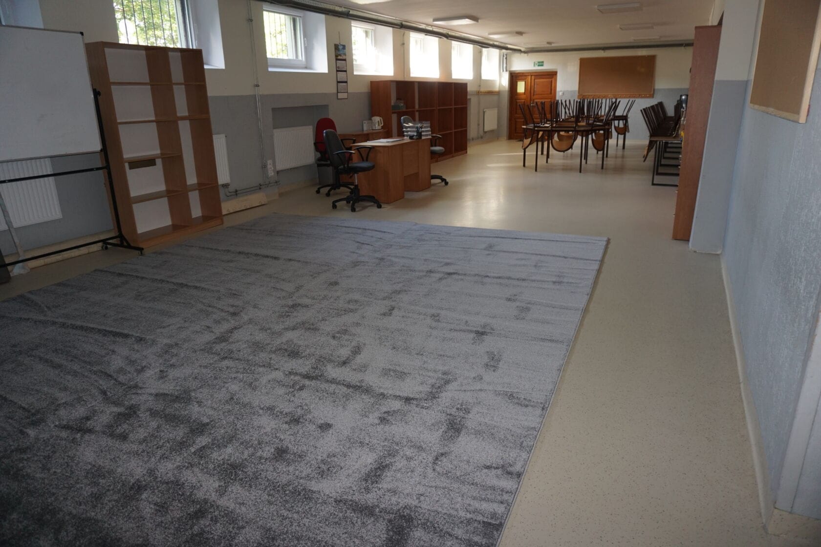 W świetlicy szkolnej dokonano wymiany drzwi, położono nową wykładzinę, wykonano remont łazienki dla personelu, wymieniono ławki i stoliki
