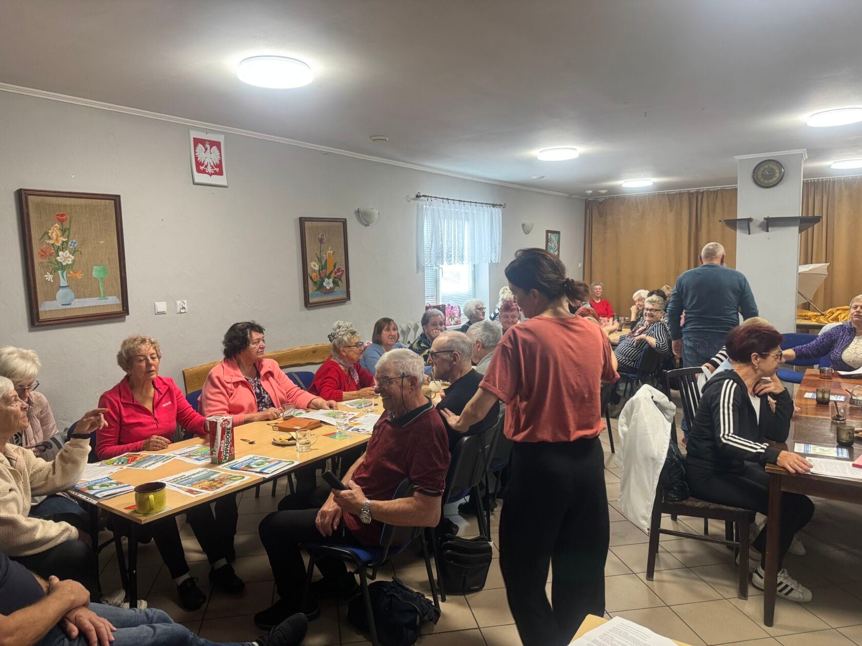 Podczas spotkania przypomnieliśmy podstawowe zasady segregacji i rozwialiśmy najczęstsze wątpliwości – co do jakiego pojemnika? Uczestnicy mieli możliwość zadawania pytań dotyczących funkcjonowania systemu odbioru odpadów, harmonogramu wywozów oraz korzystania z Punktu Selektywnego Zbierania Odpadów Komunalnych (PSZOK). Poruszono również temat ograniczania ilości odpadów poprzez ponowne wykorzystanie rzeczy i kompostowanie bioodpadów. Spotkanie przebiegało w przyjaznej atmosferze, sprzyjającej wymianie doświadczeń i budowaniu postaw proekologicznych w lokalnej społeczności.