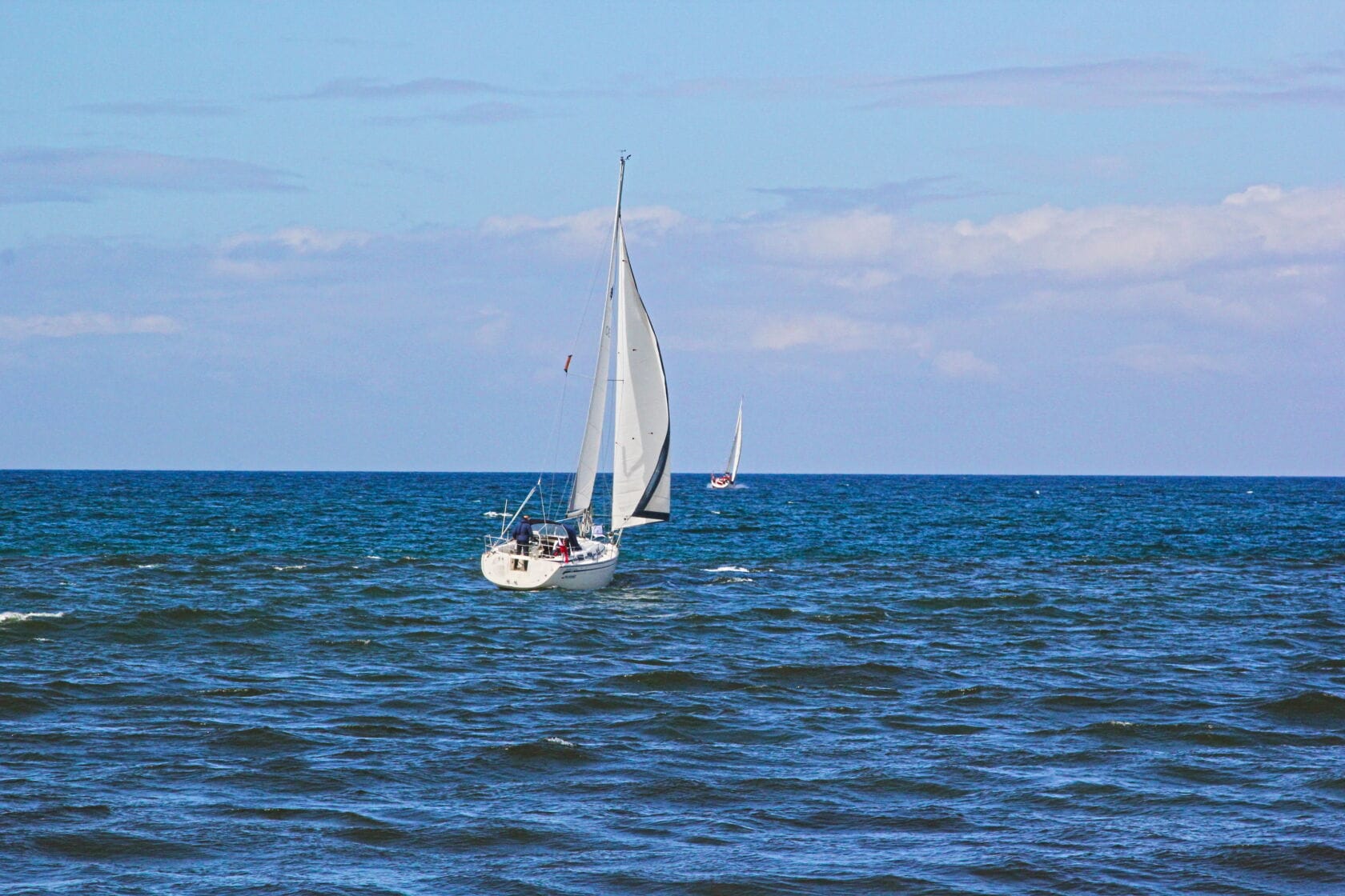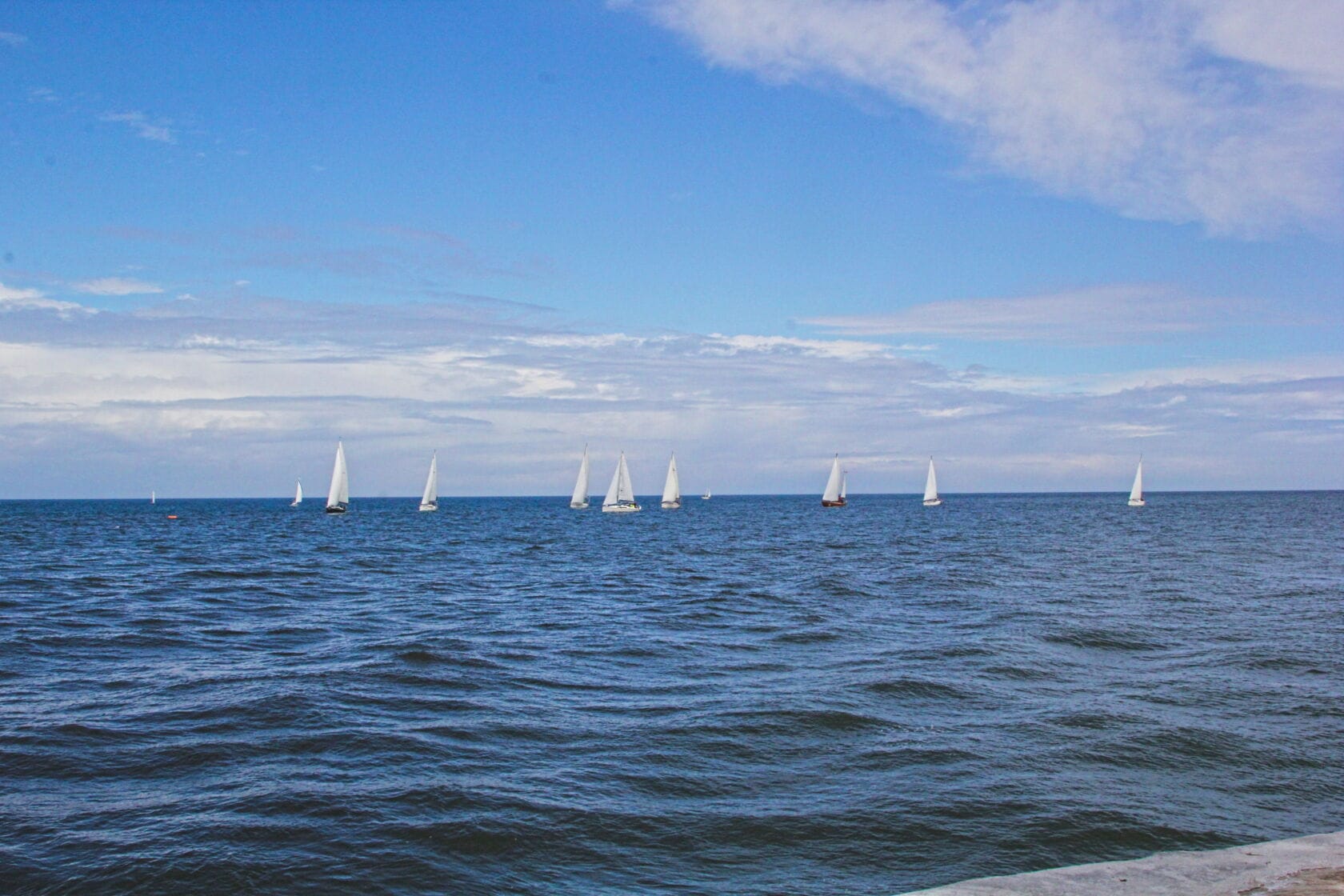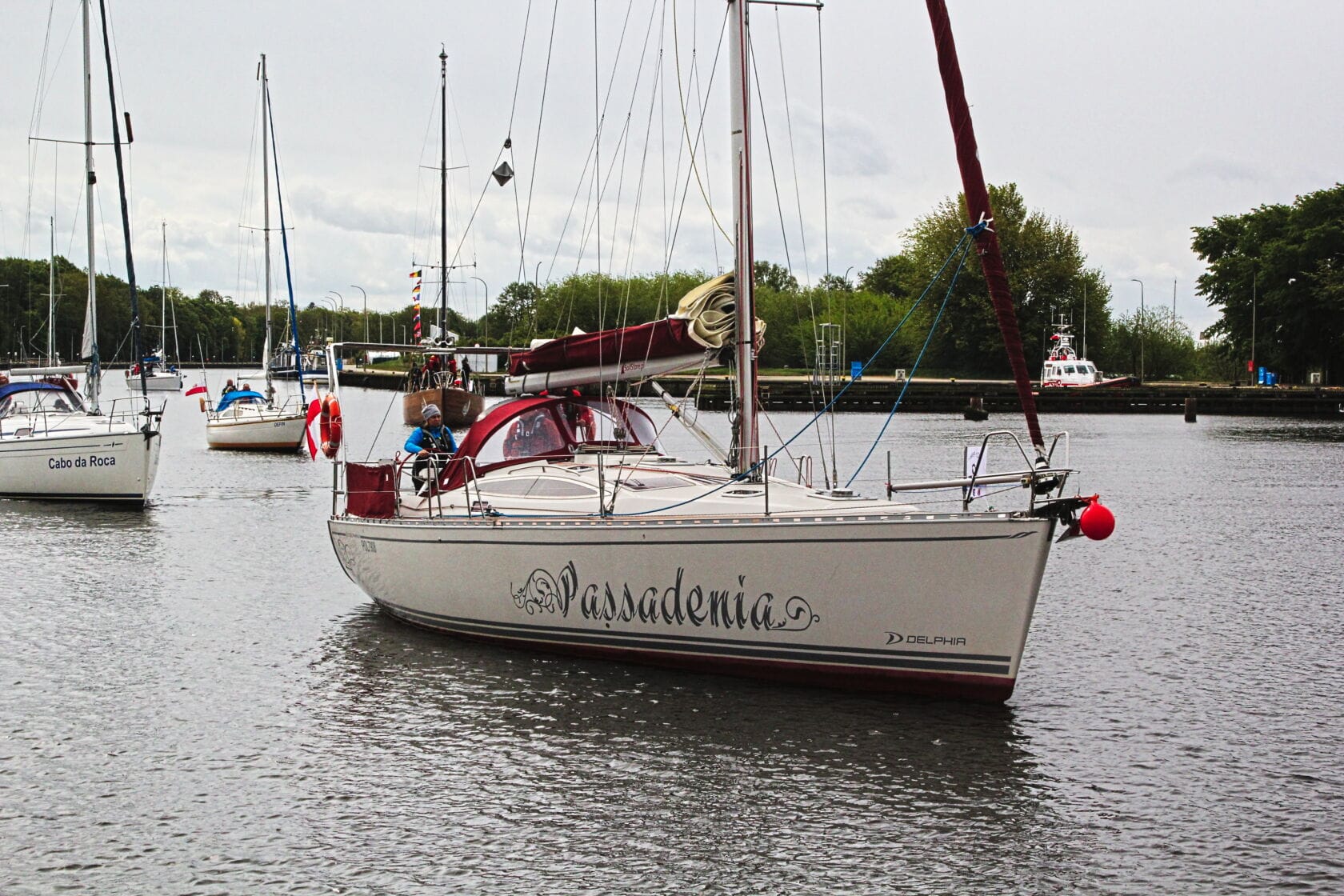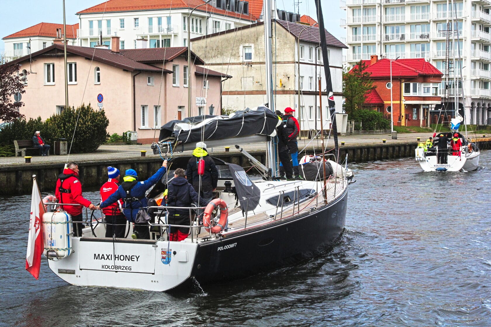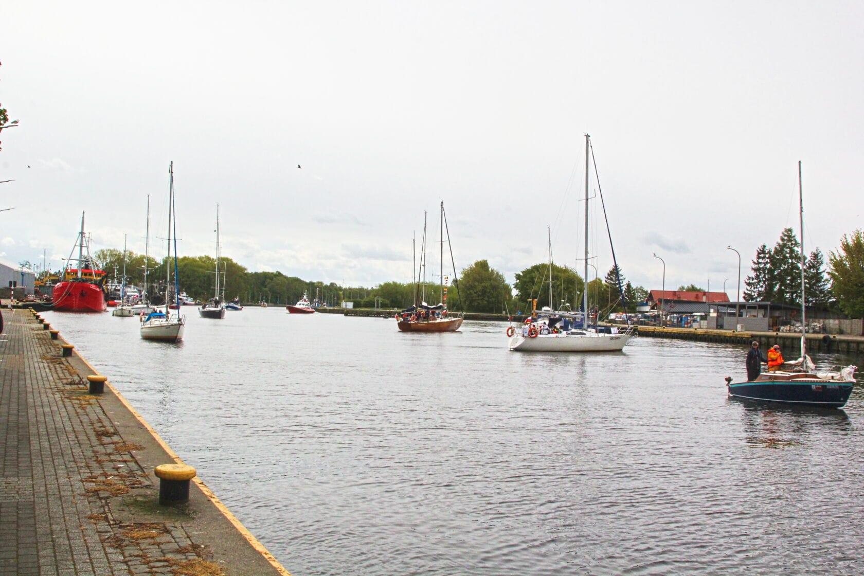 Żaglówki wpływające do portu przy nadmorskim bulwarze