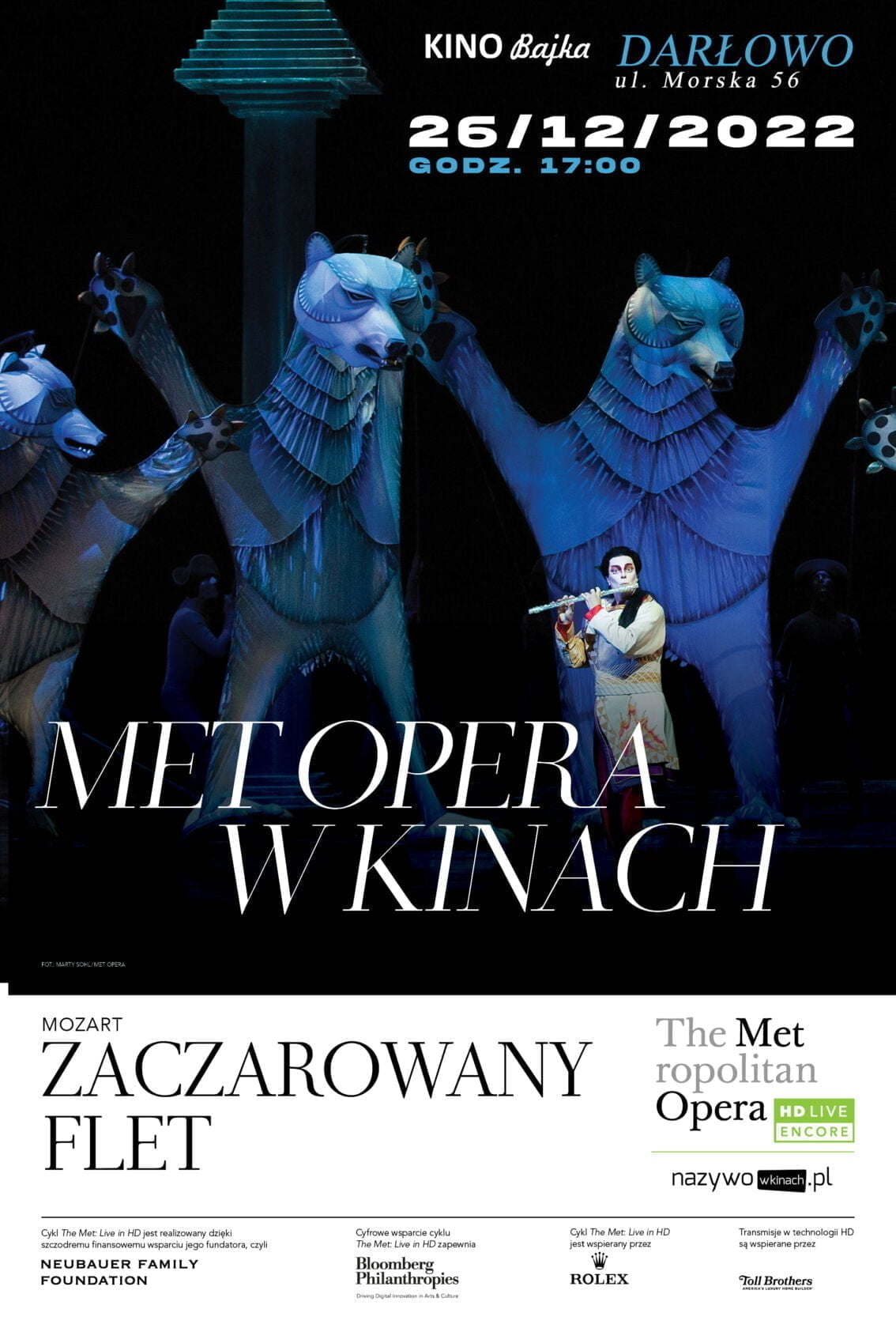 W drugim dniu świąt zapraszamy na pokaz duńskiego filmu przygodowego: “Emma i Święty Mikołaj” oraz “Zaczarowany flet”. To idealna propozycja dla tych wszystkich, którzy miłością do opery pragną zarazić swoje dzieci lub wnuki – prawdziwe przedstawienie familijne z barwnymi kostiumami, bajkowym librettem, akcentami komediowymi i wielkimi animowanymi lalkami, poruszanymi m.in. za pomocą powietrza (flet to przecież instrument dęty).